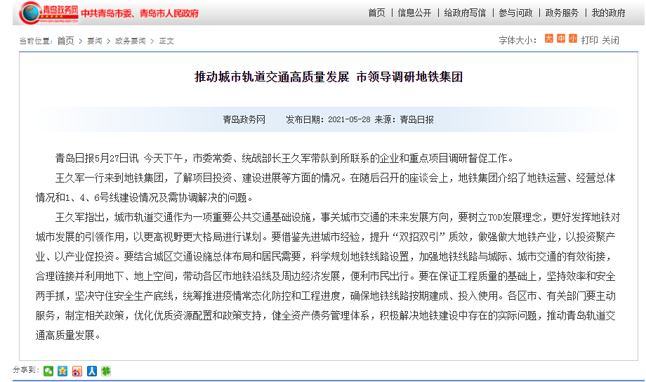 1.市委常委、統(tǒng)戰(zhàn)部長王久軍帶隊到所聯(lián)系的企業(yè)和重點項目調(diào)研督促工作(青島政務網(wǎng))