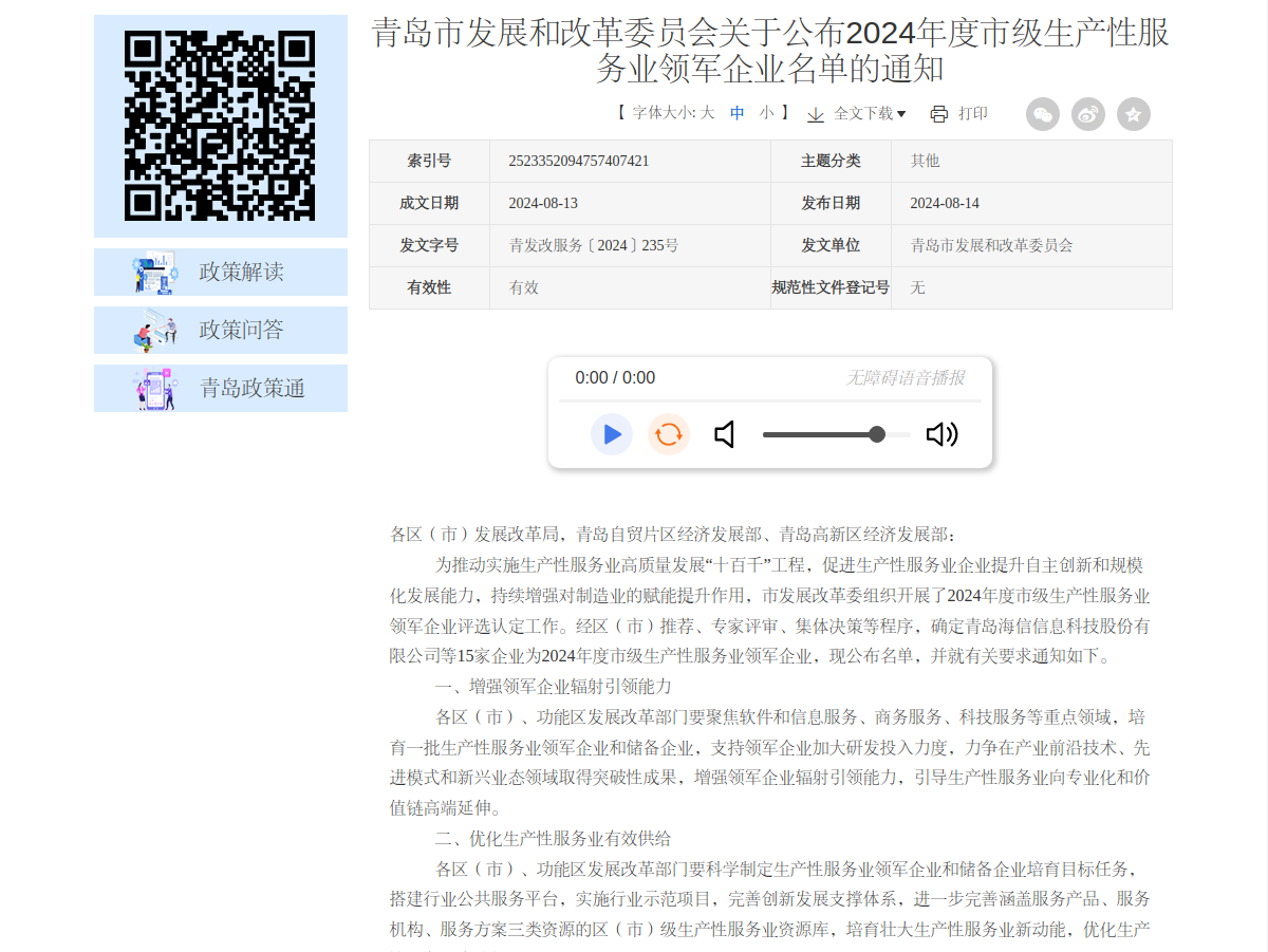 深入謀劃推動(dòng)服務(wù)業(yè)特別是生產(chǎn)性服務(wù)業(yè)發(fā)展。一是落實(shí)生產(chǎn)性服務(wù)業(yè)高質(zhì)量發(fā)展“十百千”工程?!耙粯I(yè)一策”出臺(tái)軟件和信息服務(wù)、科技服務(wù)、商務(wù)服務(wù)等9大生產(chǎn)性服務(wù)業(yè)實(shí)施方案,新增5000萬元扶持資金支持服務(wù)業(yè)發(fā)展。二是開展生產(chǎn)性服務(wù)業(yè)發(fā)展能力提升行動(dòng)。建立完善市級(jí)生產(chǎn)性服務(wù)業(yè)資源庫,新增65項(xiàng)入庫資源,其中服務(wù)產(chǎn)品33項(xiàng)、服務(wù)機(jī)構(gòu)22項(xiàng)、服務(wù)方案10項(xiàng),累計(jì)達(dá)到223項(xiàng)。三是推動(dòng)先進(jìn)制造業(yè)和現(xiàn)代服務(wù)業(yè)融合發(fā)展。認(rèn)定中國(guó)檢驗(yàn)認(rèn)證集團(tuán)山東公司等11家企業(yè)為第四批市級(jí)兩業(yè)融合試點(diǎn)單位,爭(zhēng)取有屋智能、興程人力2家企業(yè)入選第五批兩業(yè)融合試點(diǎn)。四是培育生產(chǎn)性服務(wù)業(yè)領(lǐng)軍企業(yè)。認(rèn)定海信信息科技等15家企業(yè)為2024年度市級(jí)生產(chǎn)性服務(wù)業(yè)領(lǐng)軍企業(yè),爭(zhēng)取以薩技術(shù)、銘派科技、松立控股、恒晟源4家企業(yè)入選2024年度省級(jí)生產(chǎn)性服務(wù)業(yè)領(lǐng)軍企業(yè)。上半年,全市生產(chǎn)性服務(wù)業(yè)實(shí)現(xiàn)增加值3060.2億元,同比增長(zhǎng)6.0%,占服務(wù)業(yè)比重為59.9%,比上年同期提高0.7個(gè)百分點(diǎn)。預(yù)計(jì)全年全市生產(chǎn)性服務(wù)業(yè)增加值達(dá)到6400億元。