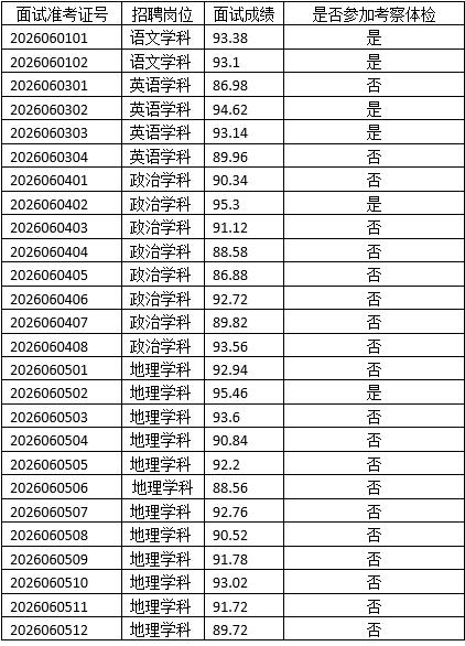 根據(jù)《青島市教育局直屬學校選聘2026屆優(yōu)秀師范類業(yè)生簡章》規(guī)定,現(xiàn)將11月20日招聘崗位面試成績公布如下: