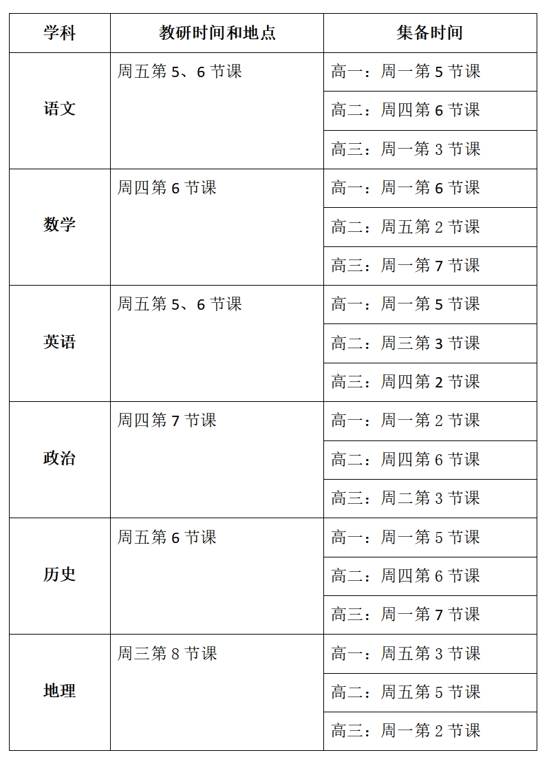山東青島第六中學(xué)2023—2024學(xué)年度學(xué)科教研和集備活動安排