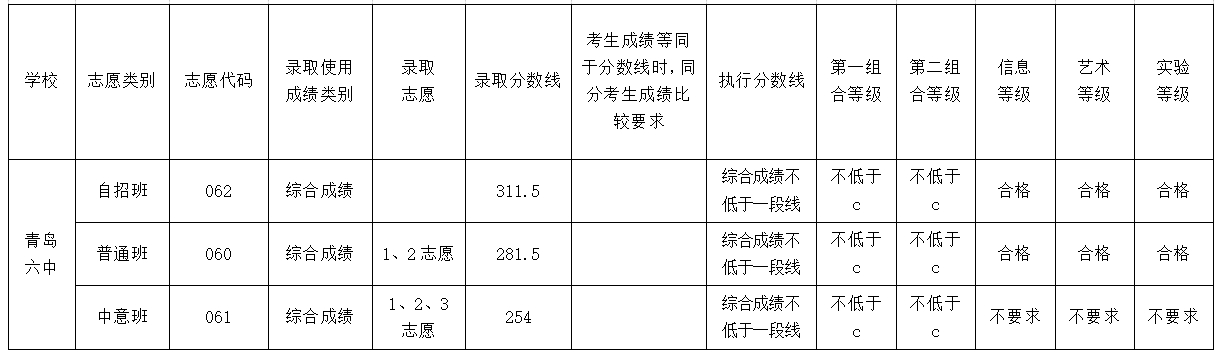 山東省青島第六中學(xué)2021年招生錄取分?jǐn)?shù)線