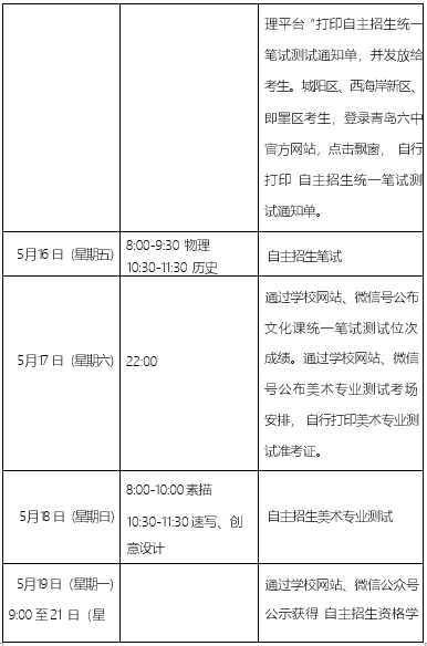 2.城陽區(qū)?、西海岸新區(qū)?、?即墨區(qū)考生于?5 月 15 日?(星期?四)9:00-20:00?期間登錄青島六中官方網(wǎng)站,自行打印?自主招?生統(tǒng)一筆試測試通知單。