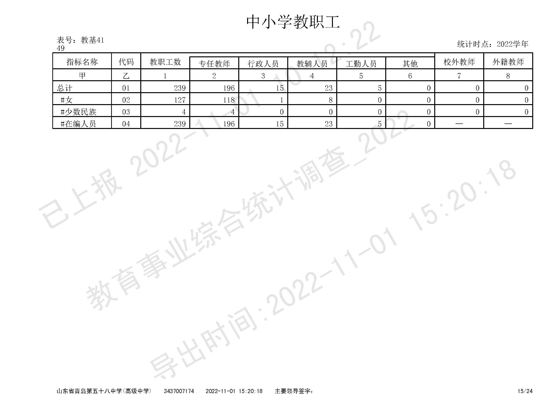 青島五十八中2022年在校師生、辦學(xué)條件數(shù)據(jù)