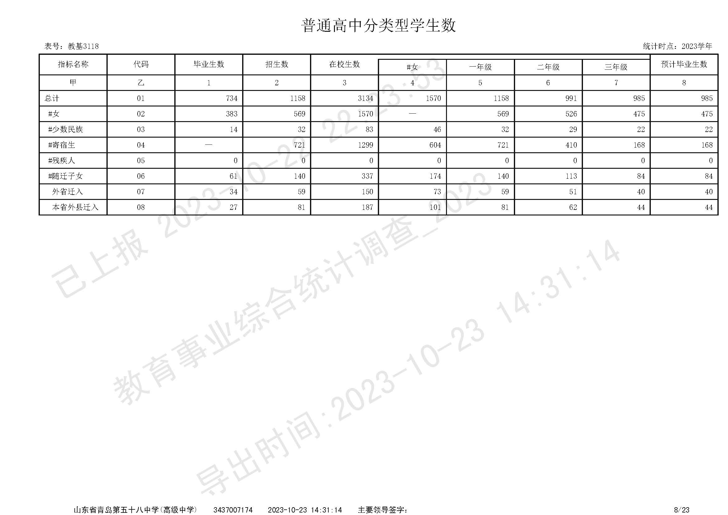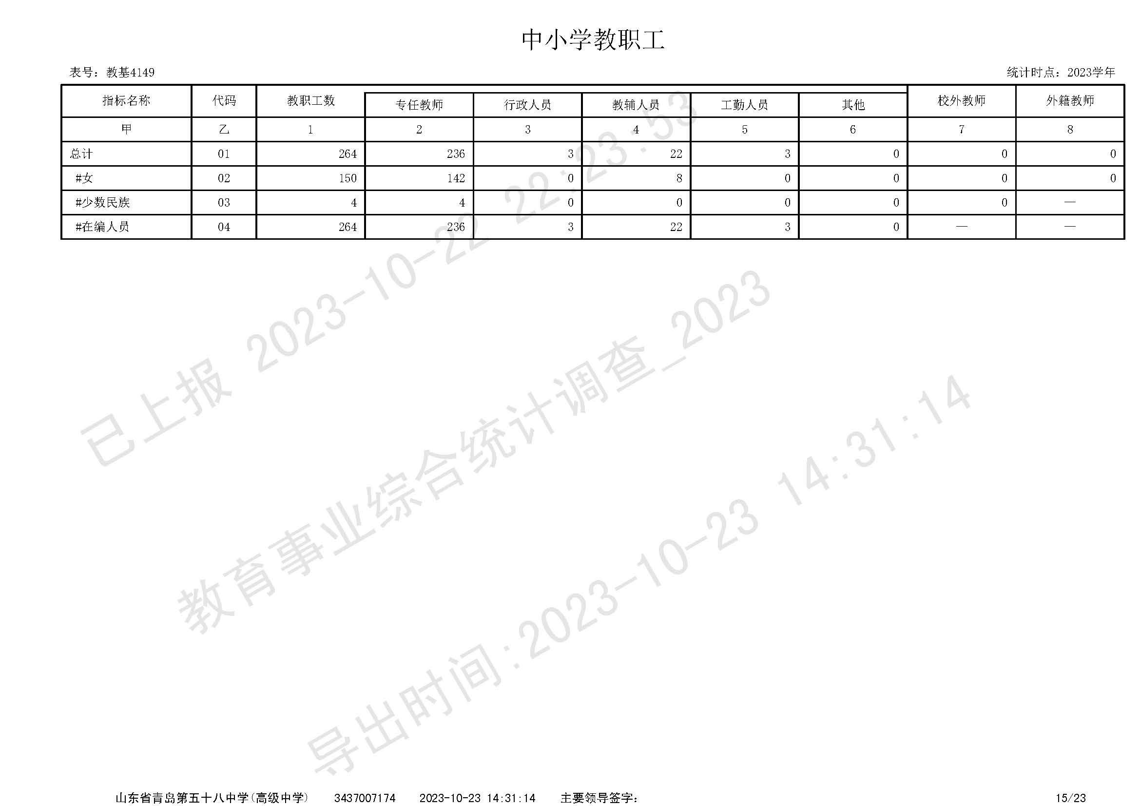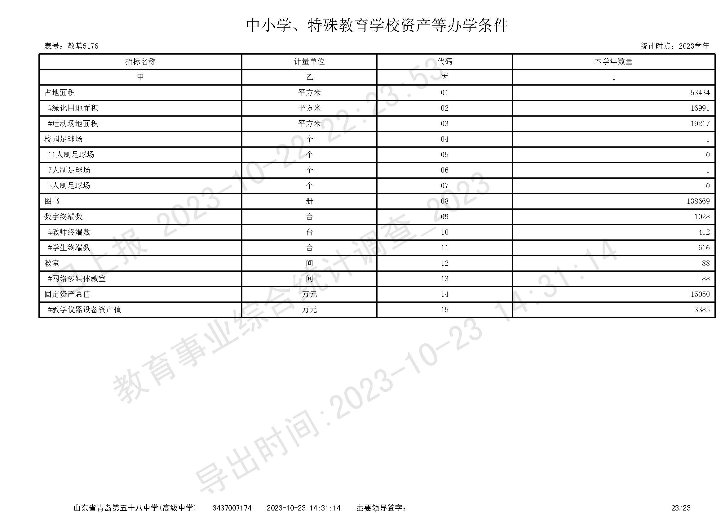 青島五十八中2023年在校師生、辦學(xué)條件數(shù)據(jù)