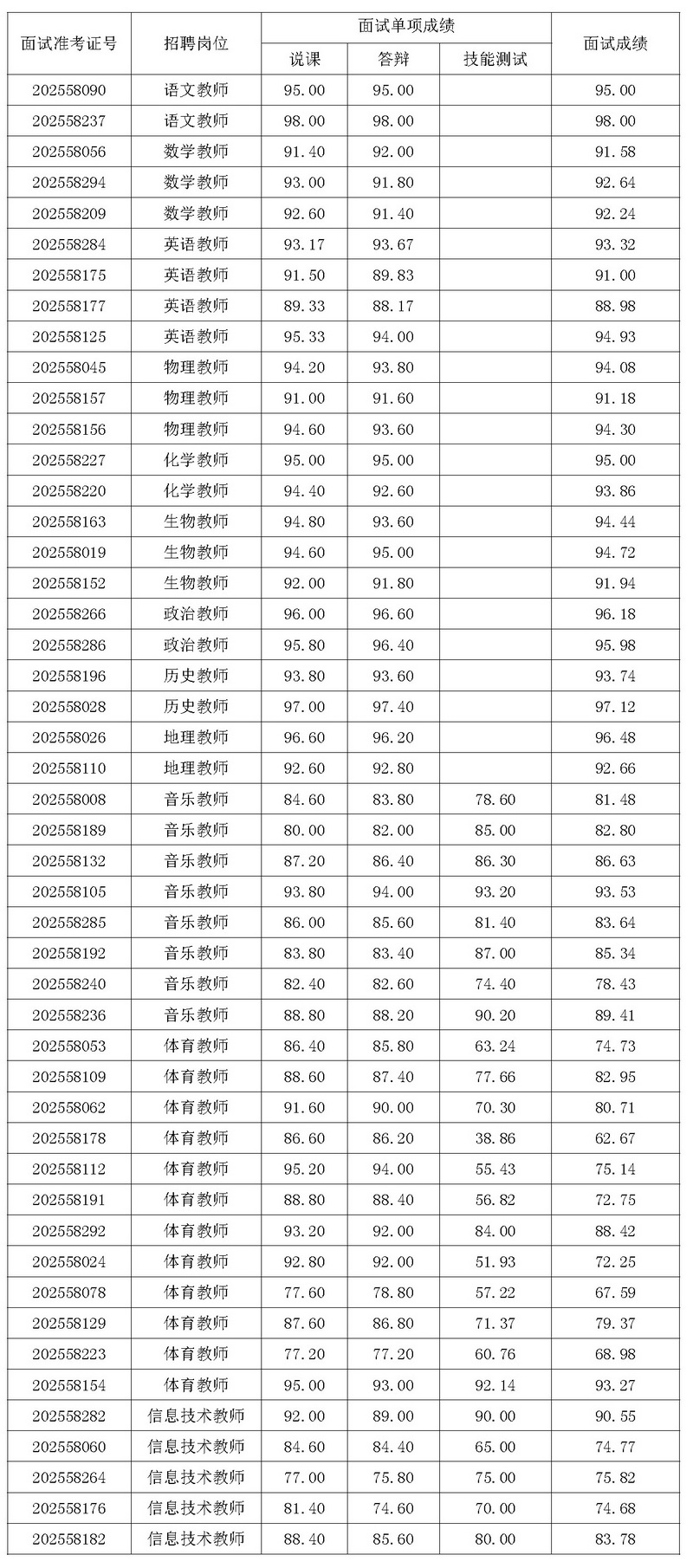 根據(jù)《青島市教育局直屬學校選聘2026年應屆高校畢業(yè)生簡章》規(guī)定,現(xiàn)將11月16日已全部結(jié)束的招聘崗位面試成績予以公布。