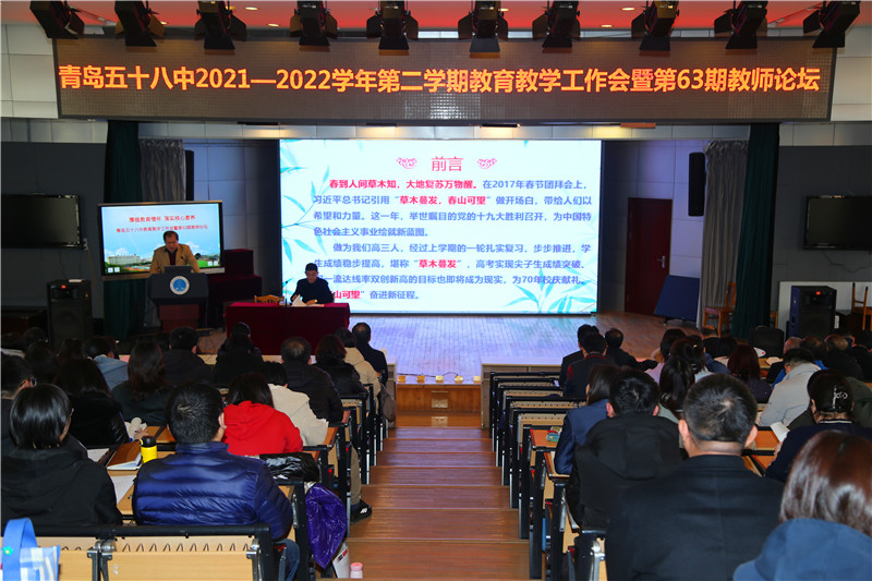 2022年3月3日,2021—2022學年第二學期教育教學工作會暨第63期教師論壇在報告廳隆重舉行。本次會議的主題是“厚植教育情懷 落實核心素養(yǎng)”。會議由紀煒副校長主持,全體教職工參會。在第63期教師論壇上,有四位一線教師代表依次發(fā)言,他們視野開闊,格局宏大,為大家?guī)砹司始姵实木袷⒀纭?/span>