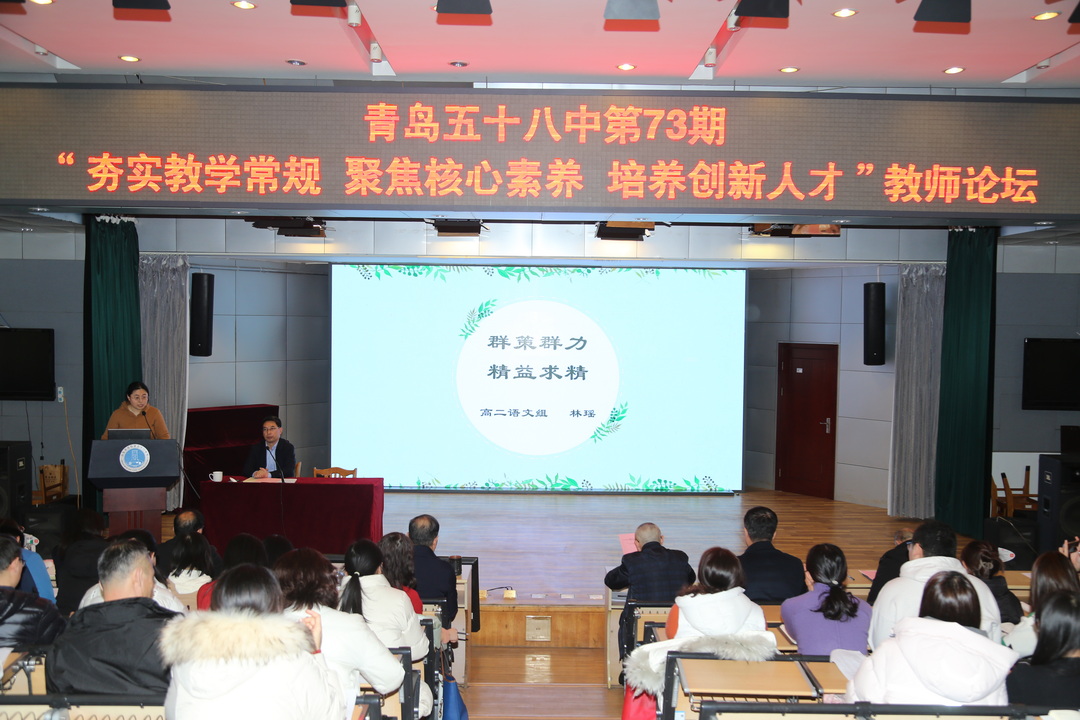 日月春暉漸,光華萬物新。2024年2月25日,青島五十八中2023-2024學(xué)年第二學(xué)期期初教學(xué)工作會(huì)暨第73期教師論壇在報(bào)告廳隆重舉行。會(huì)議的主題為: 夯實(shí)教學(xué)常規(guī) 聚焦核心素養(yǎng) 培育創(chuàng)新人才。教育集團(tuán)核心校、高新校區(qū)、附屬棗山中學(xué)干部教師等300余人參加會(huì)議。會(huì)議由核心校副校長(zhǎng)封強(qiáng)主持。