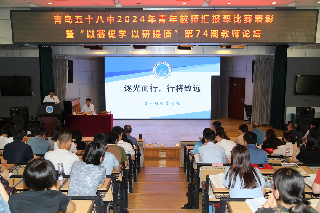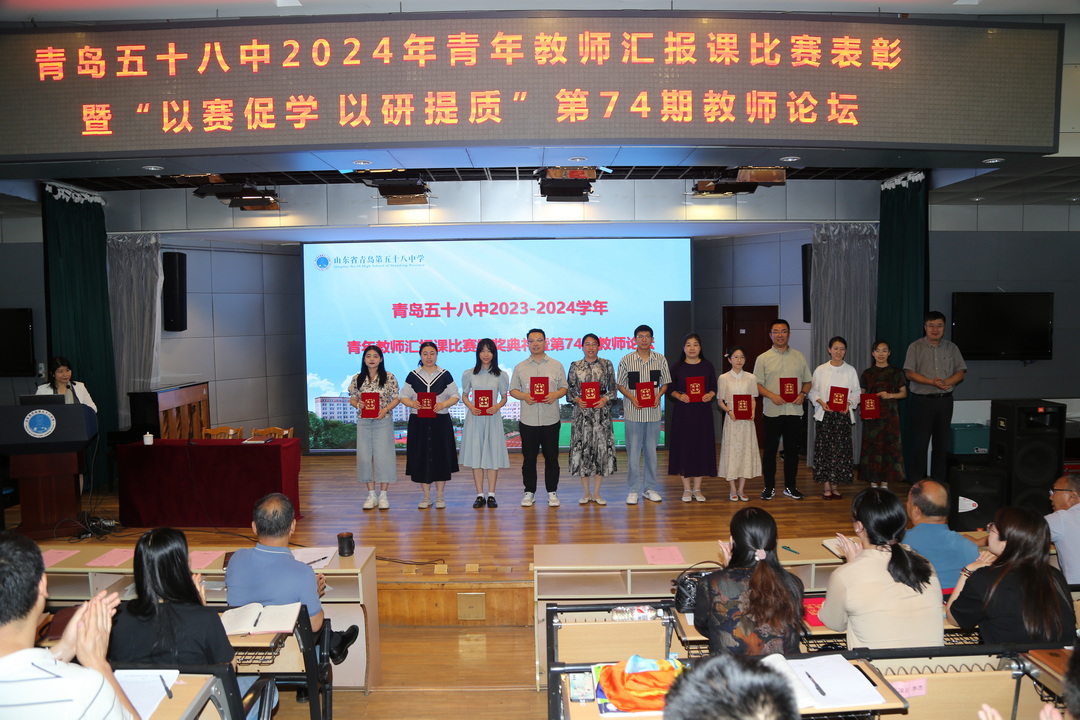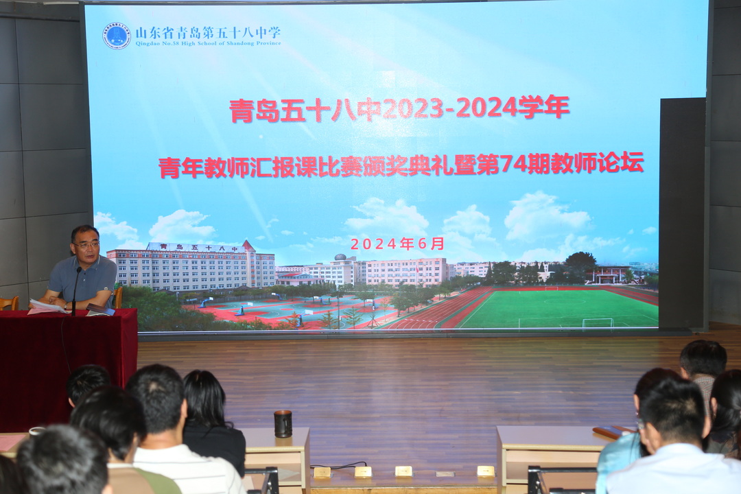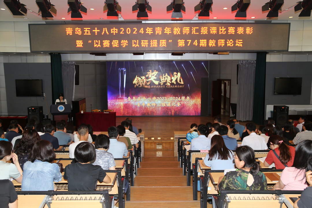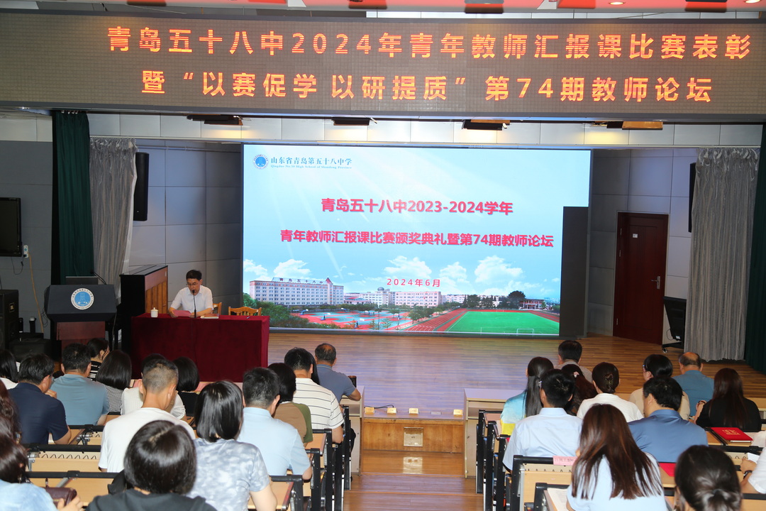 6月20日下午,青島五十八中2024年青年教師基本功比賽表彰會暨“以賽促學(xué) 強課提質(zhì)”第74期教師論壇在學(xué)校報告廳舉行,會議由封強副校長主持,學(xué)校全體教職工參會。
