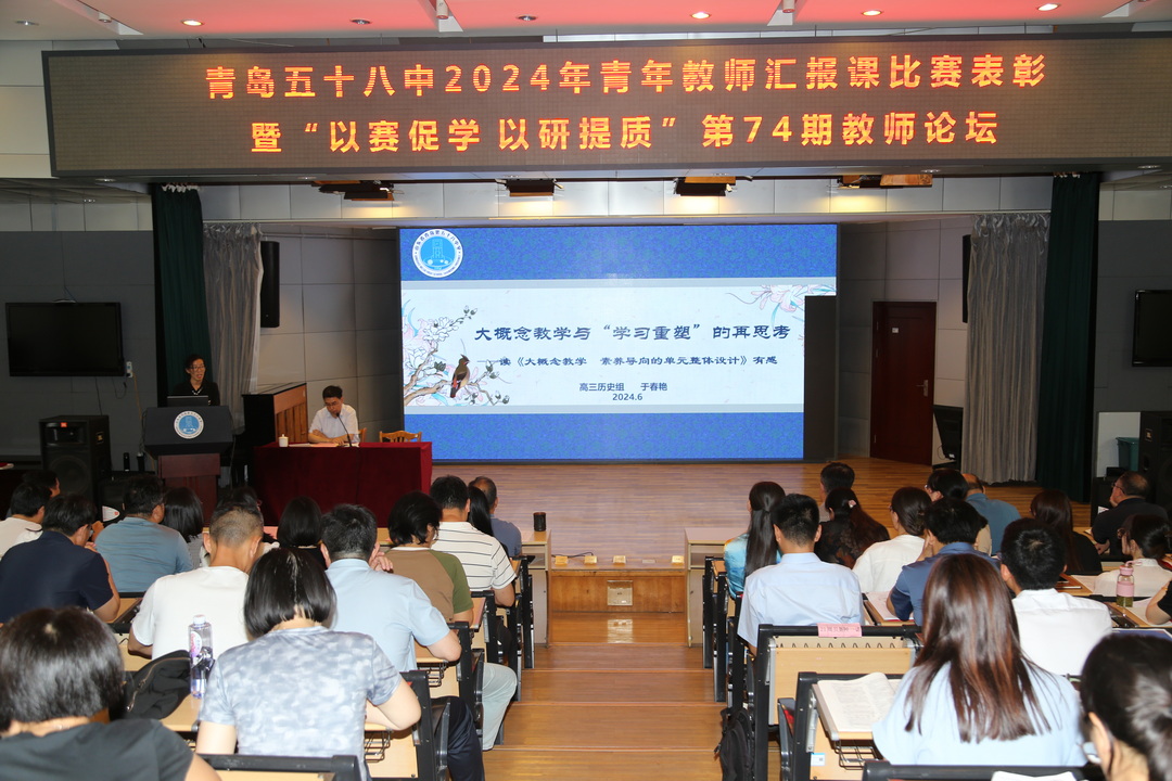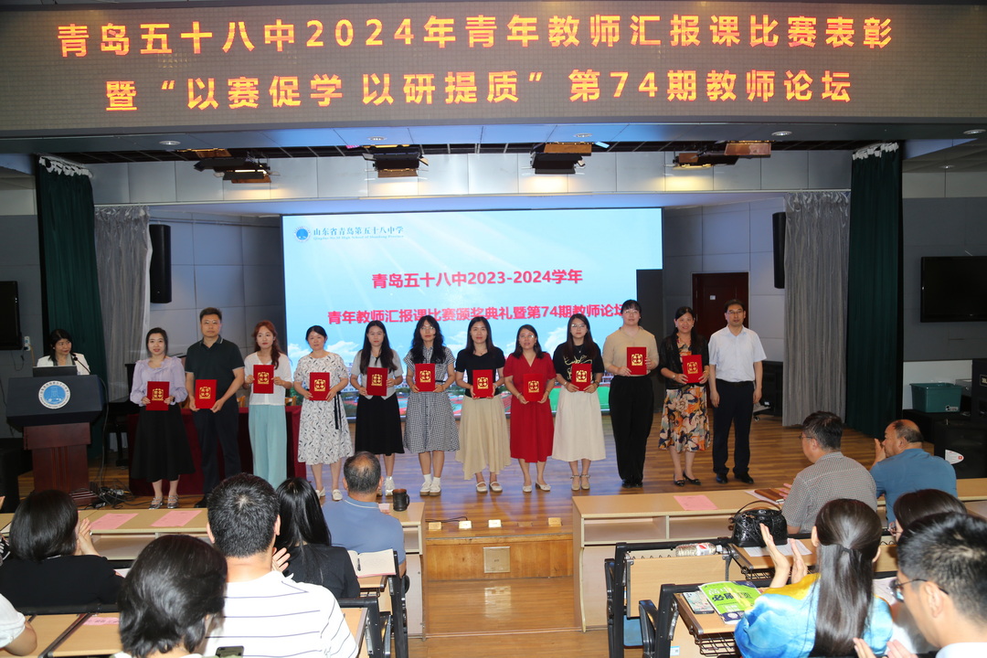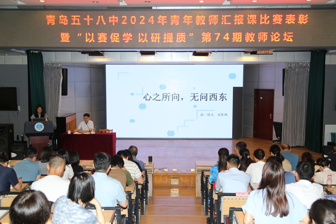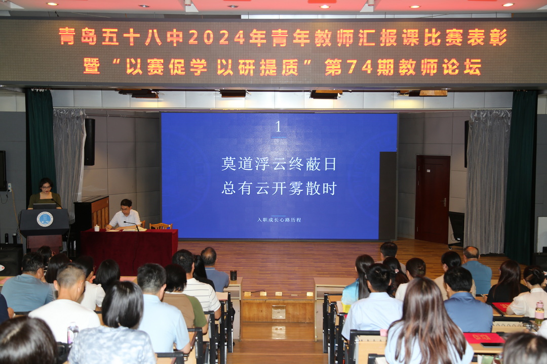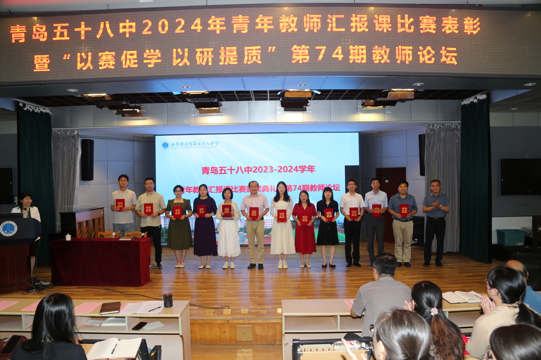 6月20日下午,青島五十八中2024年青年教師基本功比賽表彰會暨“以賽促學(xué) 強課提質(zhì)”第74期教師論壇在學(xué)校報告廳舉行,會議由封強副校長主持,學(xué)校全體教職工參會。