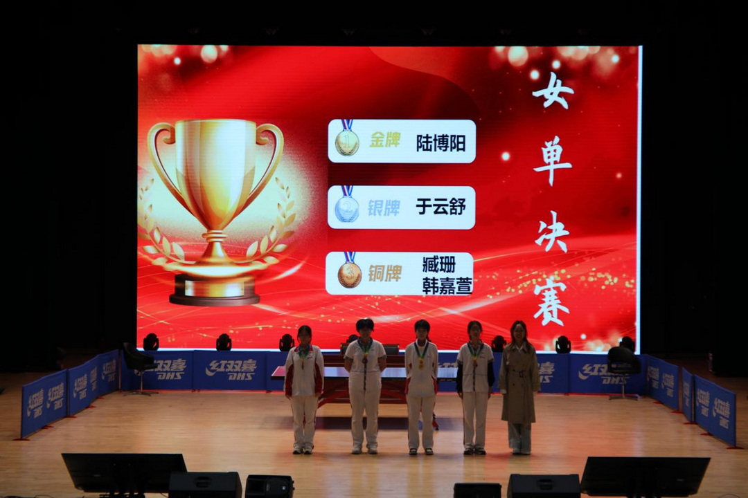 體育競(jìng)技比賽,不光考察選手們的技戰(zhàn)術(shù),更重視選手們心理素質(zhì)和臨場(chǎng)發(fā)揮能力。在賽場(chǎng)上,選手們面對(duì)交替領(lǐng)先的比分,及時(shí)調(diào)整戰(zhàn)術(shù),展現(xiàn)了最好的競(jìng)技水平,拼出了青春昂揚(yáng)的朝氣和勇不服輸?shù)亩分?。最后校本部高?3班劉家旭、高一2班李東芮,高新校區(qū)高一1班宋坤、高一4班陸博陽(yáng)分別斬獲男單和女單冠軍。