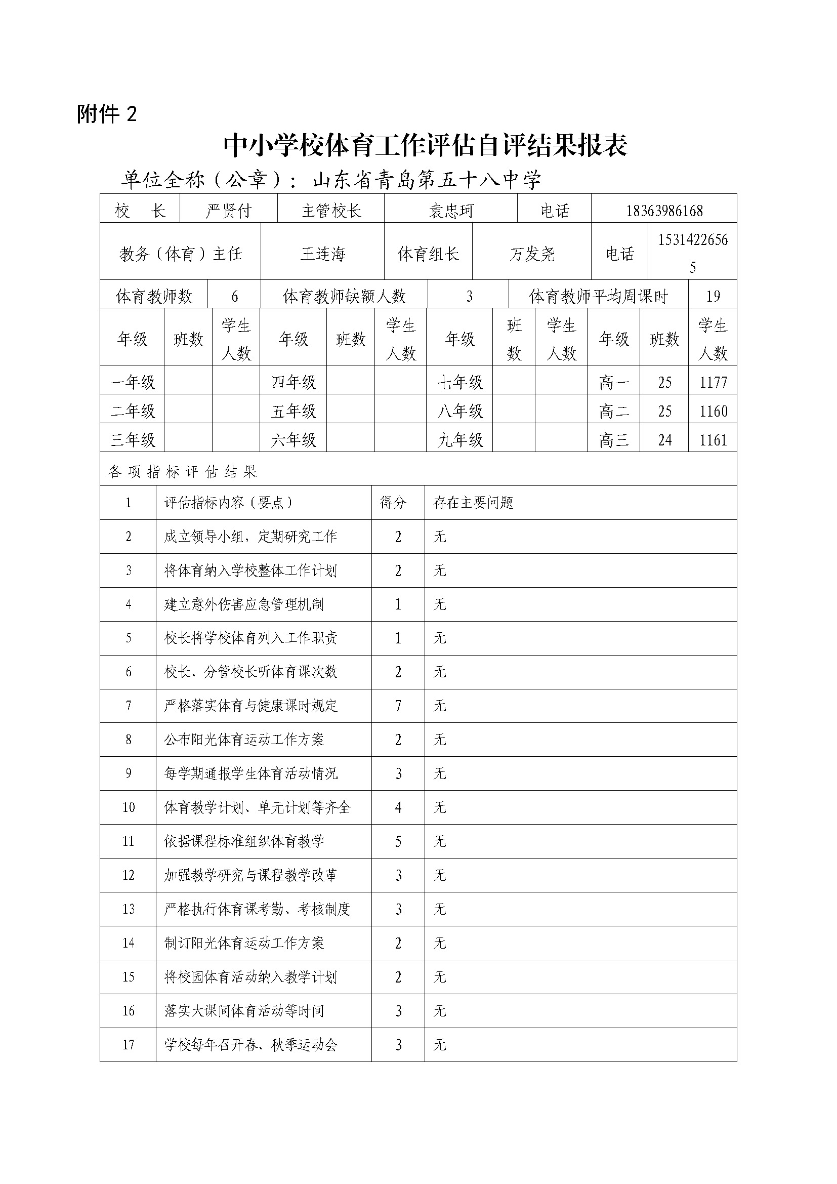 青島五十八中2025年中小學(xué)校體育評估自評結(jié)果報表