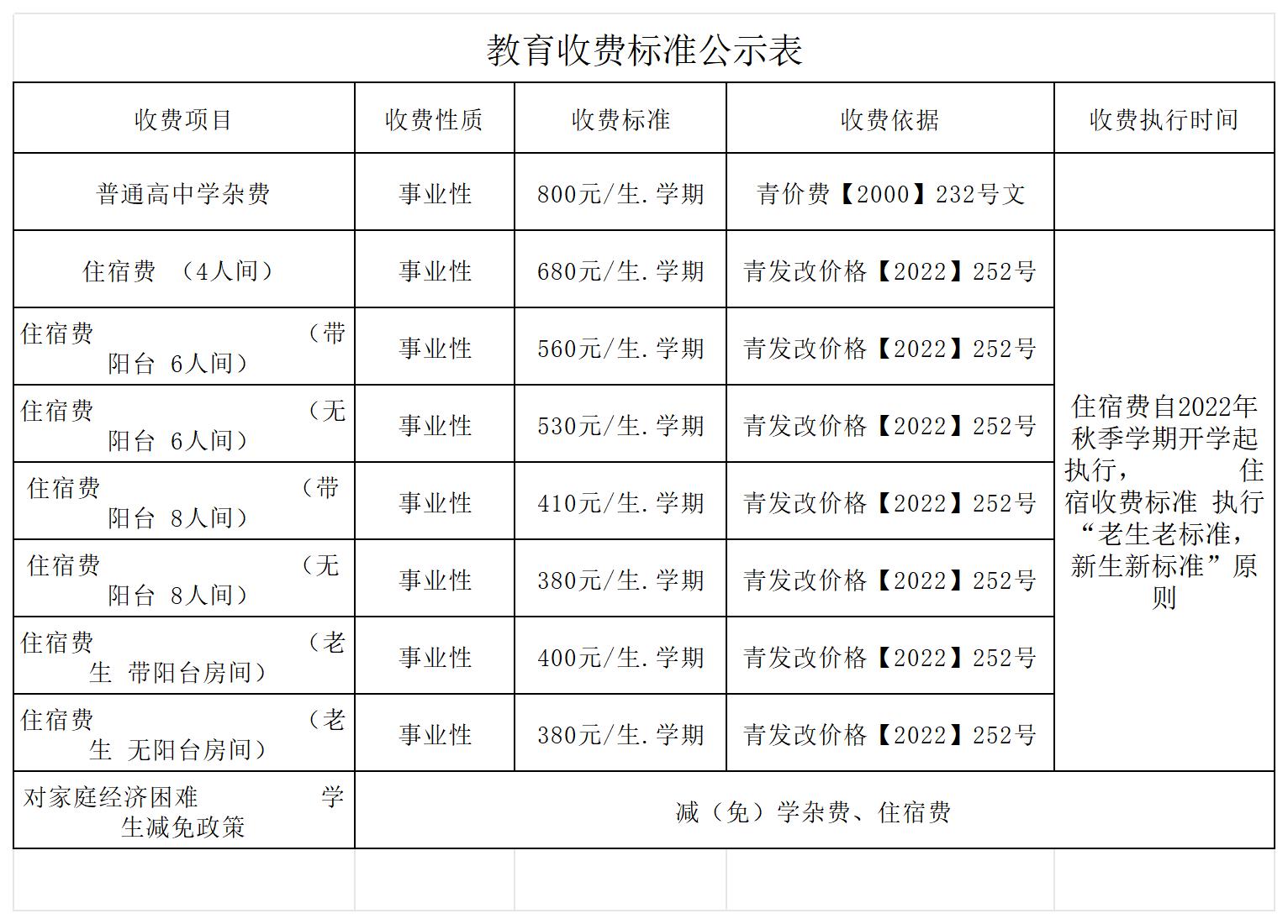青島一中2023-2024學(xué)年度教育收費(fèi)標(biāo)準(zhǔn)公示表