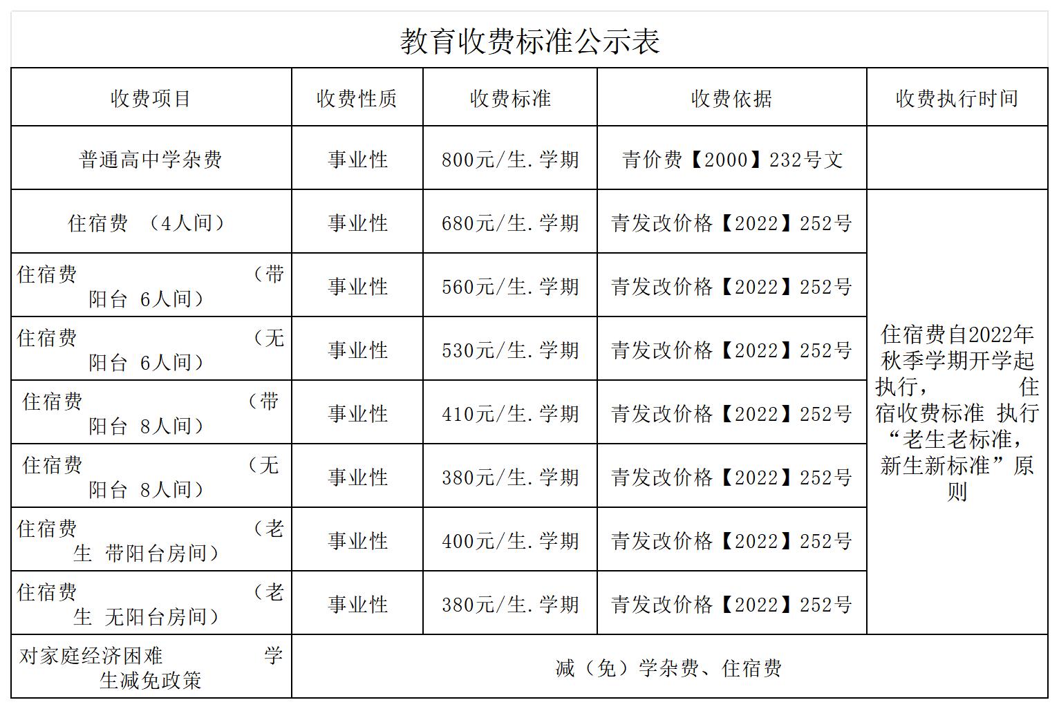 青島一中2022-2023學(xué)年度教育收費(fèi)標(biāo)準(zhǔn)公示表