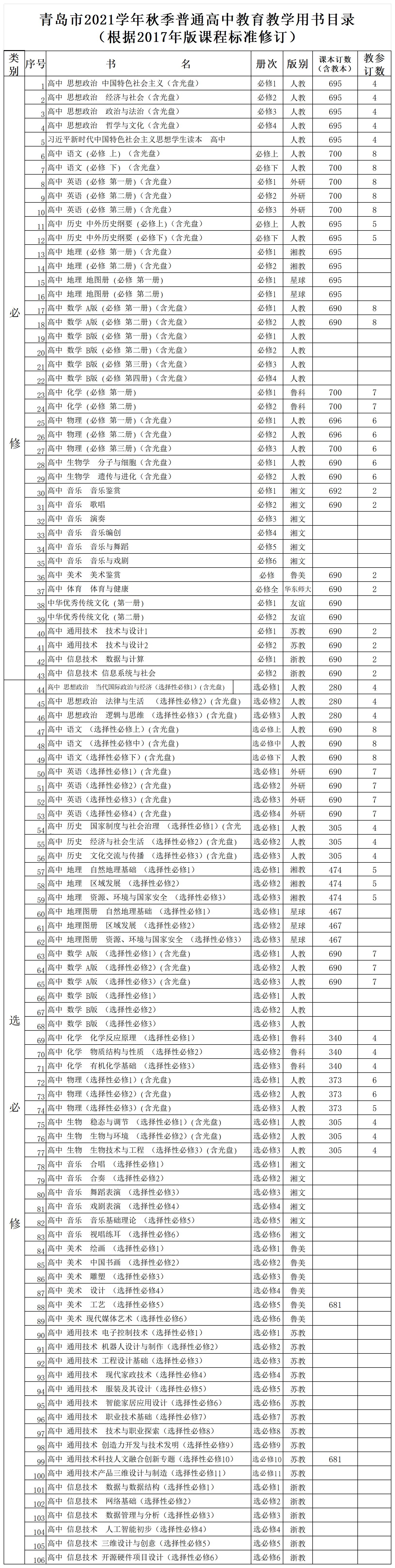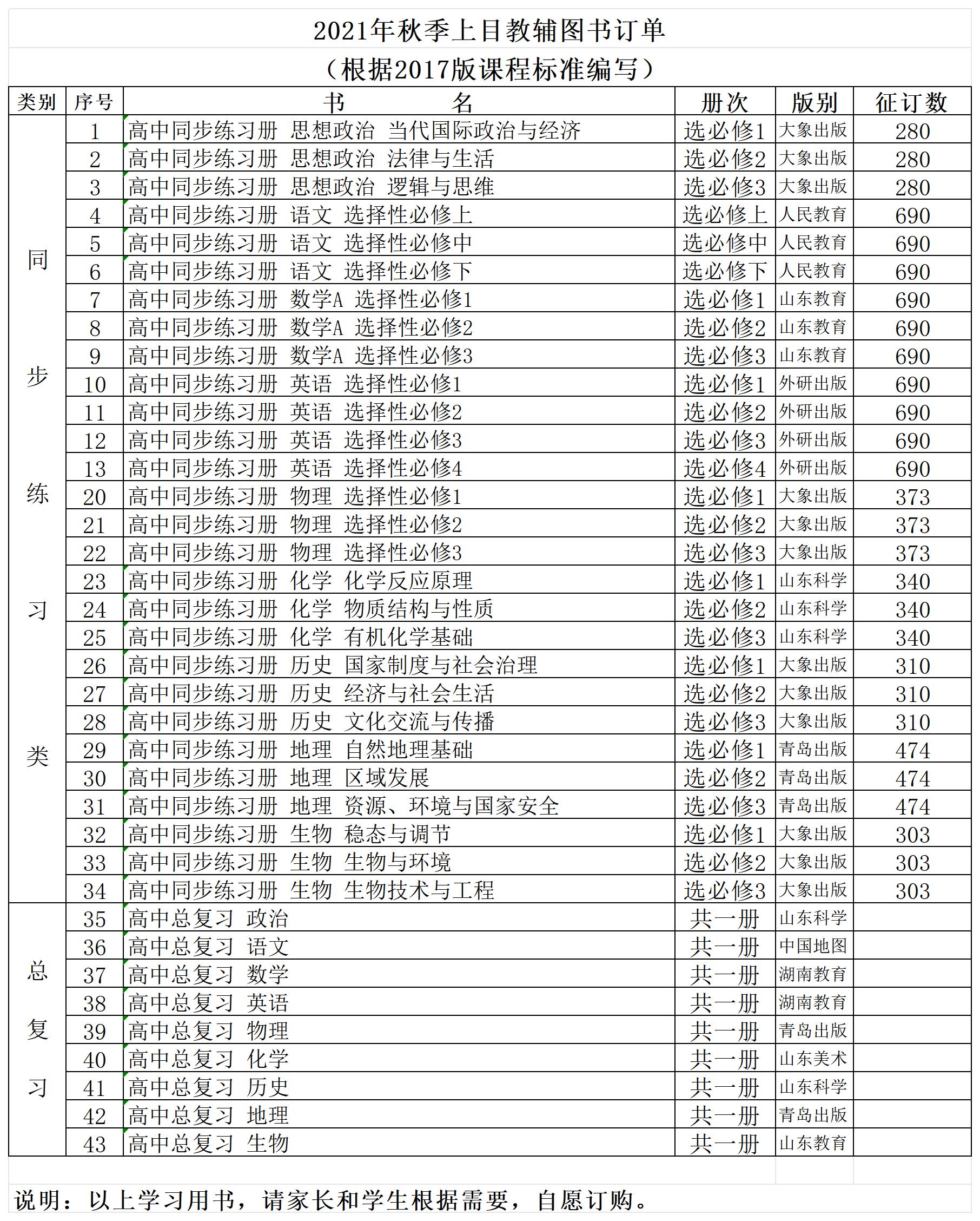 青島一中教材教輔信息(2021.9)