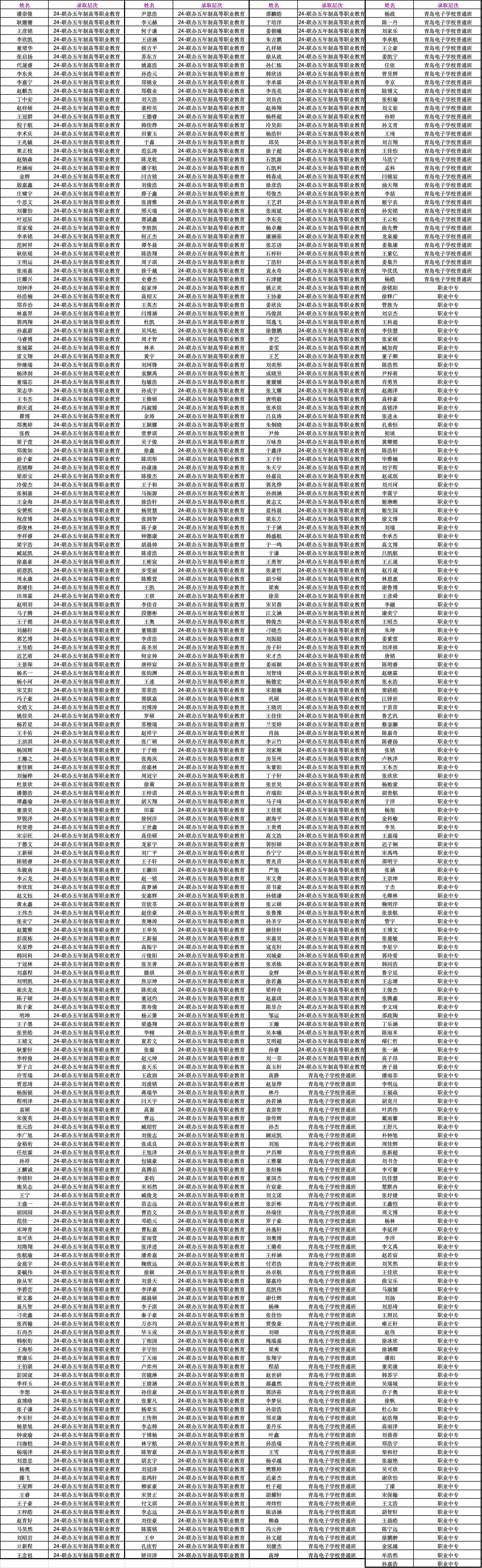 青島電子學校 2024年錄取名單