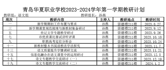 青島華夏職業(yè)學(xué)校2023-2024學(xué)年第一學(xué)期教研活動