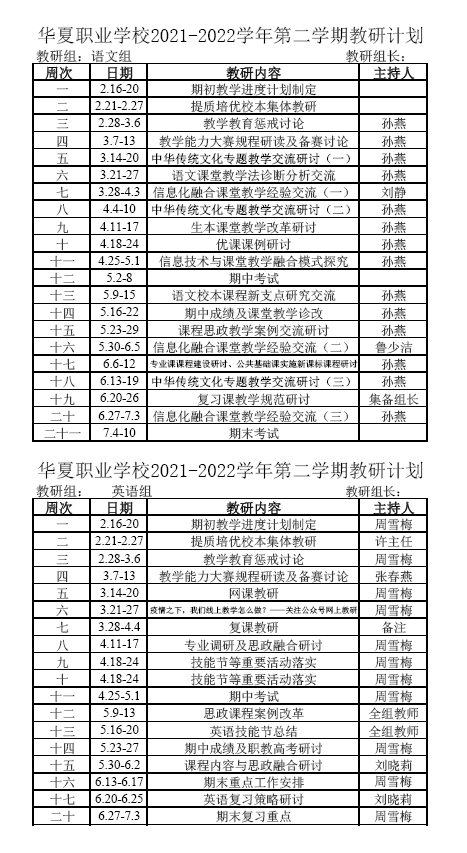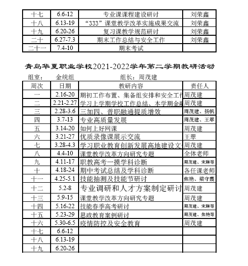 青島華夏職業(yè)學(xué)校2021-2022學(xué)年第二學(xué)期教研活動(dòng)
