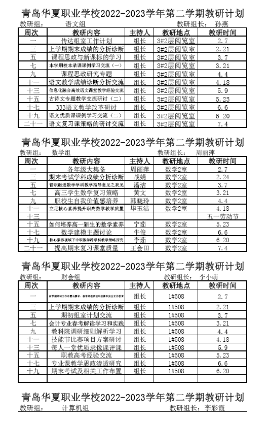 青島華夏職業(yè)學(xué)校2022-2023學(xué)年第二學(xué)期教研活動(dòng)