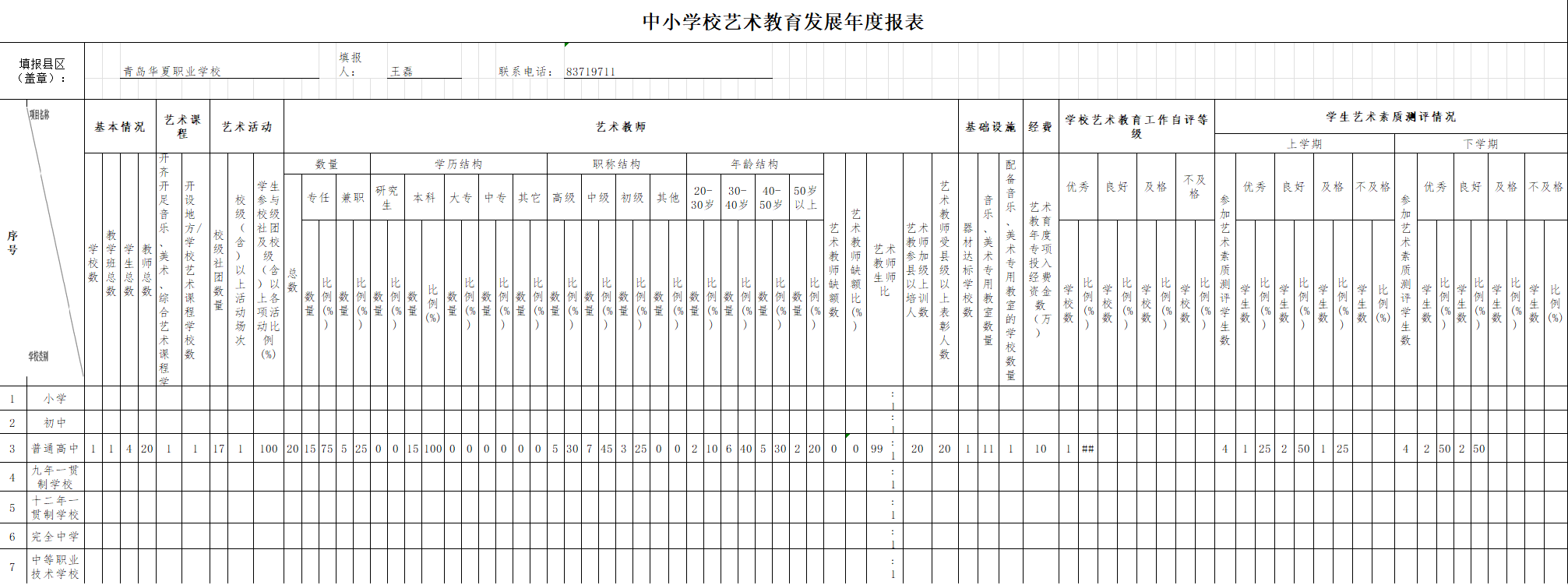 青島華夏職業(yè)學校2022-2023學年度第二學期中小學校藝術(shù)教育發(fā)展年度報表