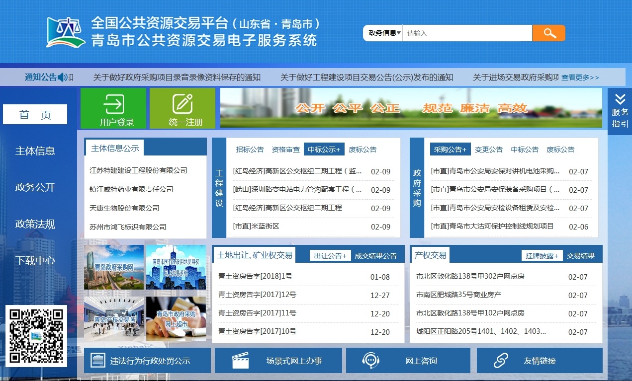 推行中標候選人業(yè)績公示制度,全面公示中標候選人相關資質(zhì)、業(yè)績,接受社會各界廣泛監(jiān)督。依托青島市公共資源交易網(wǎng),全面公開招標公告和預中標公示信息,及時公開項目基本信息、投標企業(yè)資格、項目負責人資格、同類業(yè)績要求、中標單位、人員配置、中標價格、工期、業(yè)績及得分情況等,實現(xiàn)公共資源配置全流程公開和信息資源共享。
