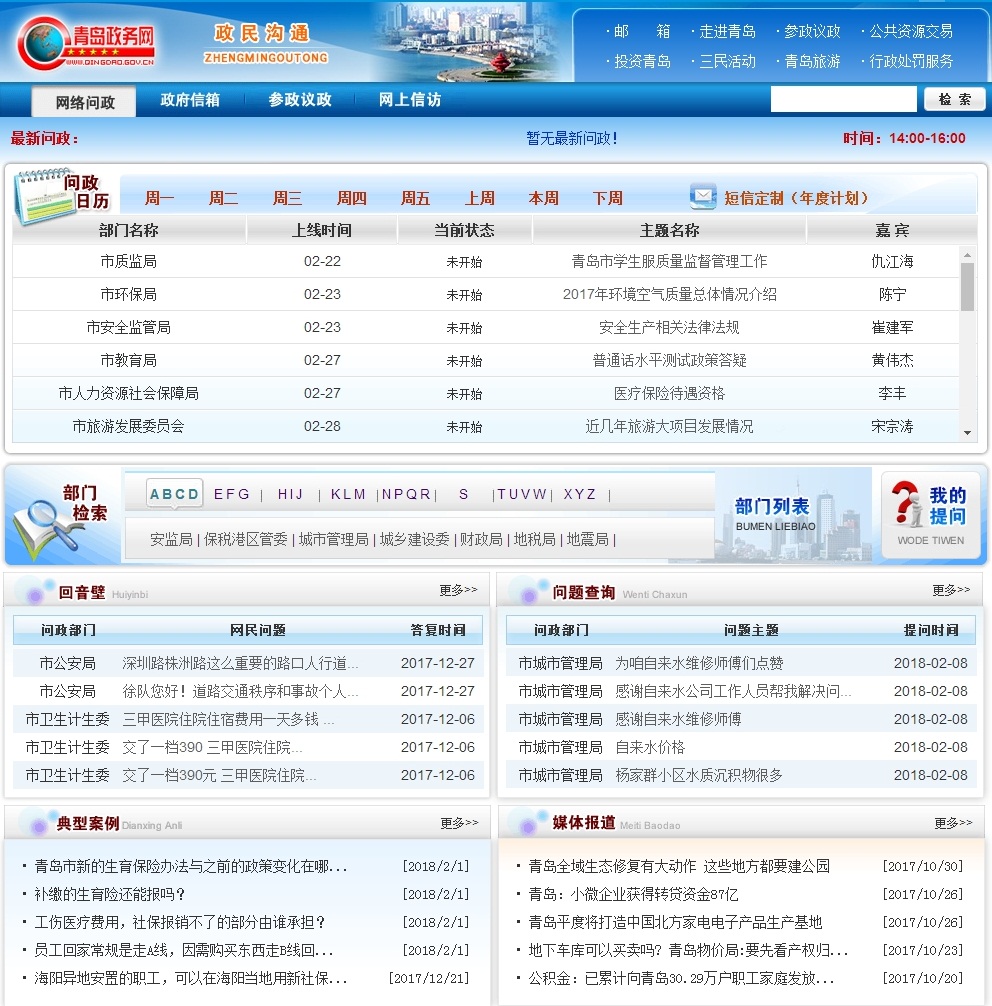1.互聯(lián)網(wǎng)。市政府及政府部門,各區(qū)市政府均在互聯(lián)網(wǎng)上建立了網(wǎng)站或政府信息公開專欄,作為政府信息主動公開和依申請公開服務的主渠道。各級政府信息公開目錄、指南、年度報告和相關工作制度均可通過政府網(wǎng)站查閱。手機用戶可通過青島政務網(wǎng)手機網(wǎng)站(http://m.qingdao.gov.cn)查閱政府信息,或通過安裝青島政務網(wǎng)客戶端軟件、關注青島政務網(wǎng)微信公眾號等多種方式獲取政府信息。