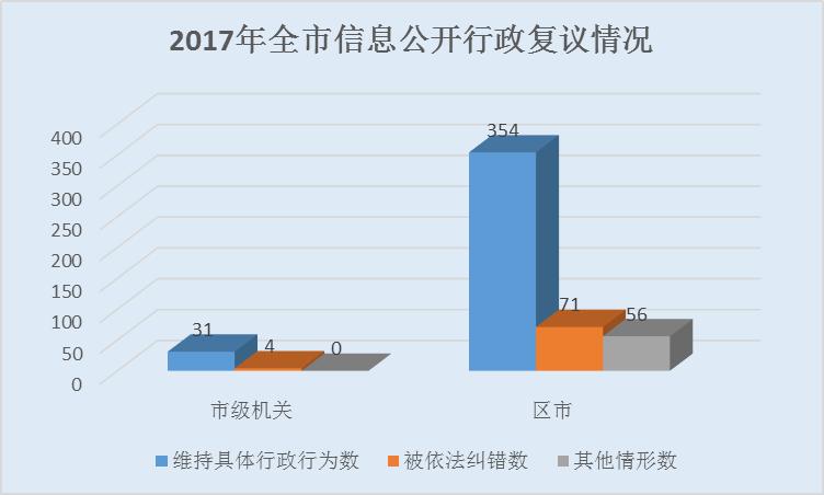 全市以信息公開為案由被提起行政復議案件516件。市級機關共35件,其中維持具體行政行為31件,糾錯4件;區(qū)市共481件,其中維持具體行政行為354件,糾錯71件,其他情形56件。
