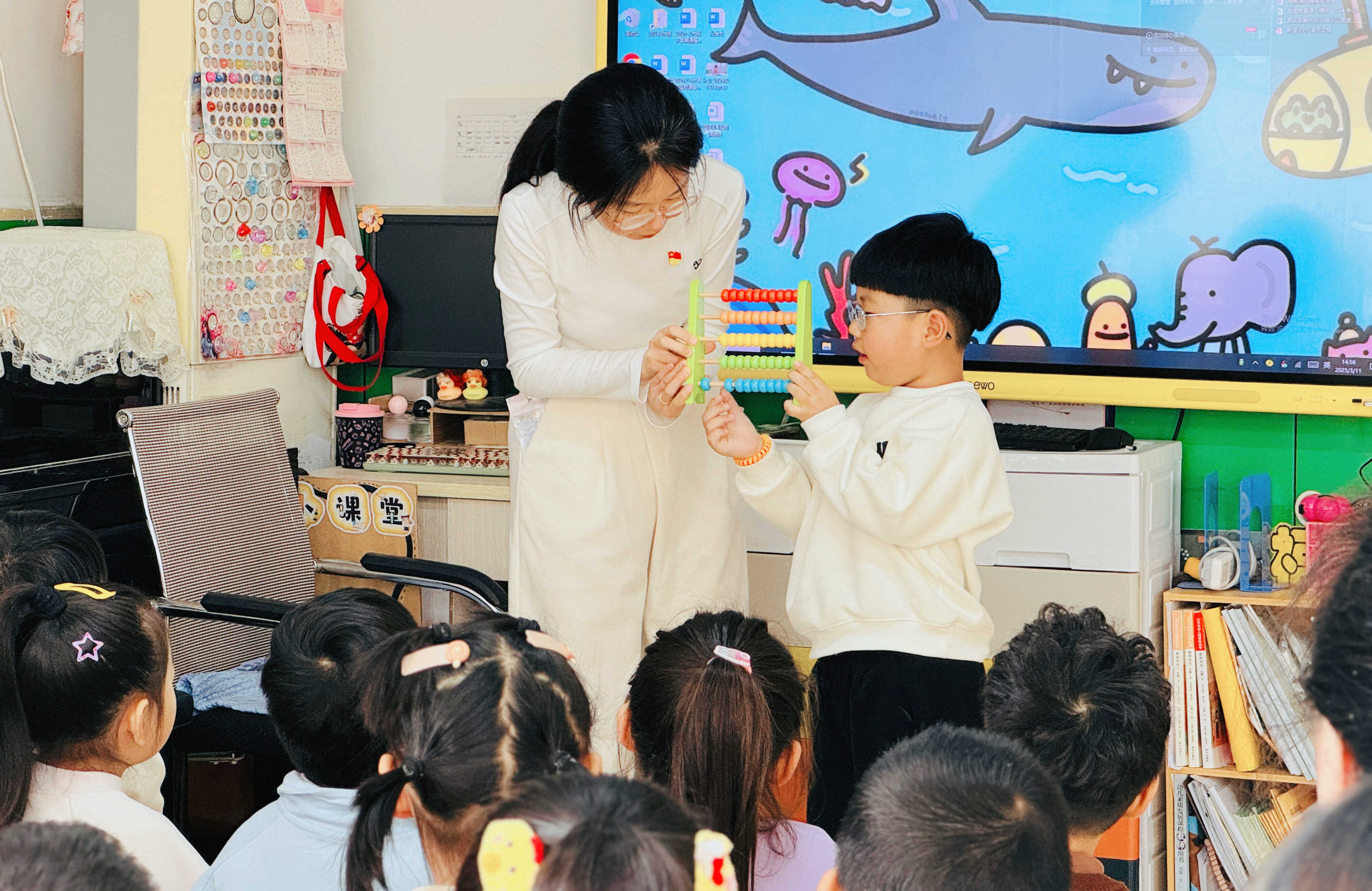 青島洛陽(yáng)路第二小學(xué)教師正與探校幼兒熱情互動(dòng)
