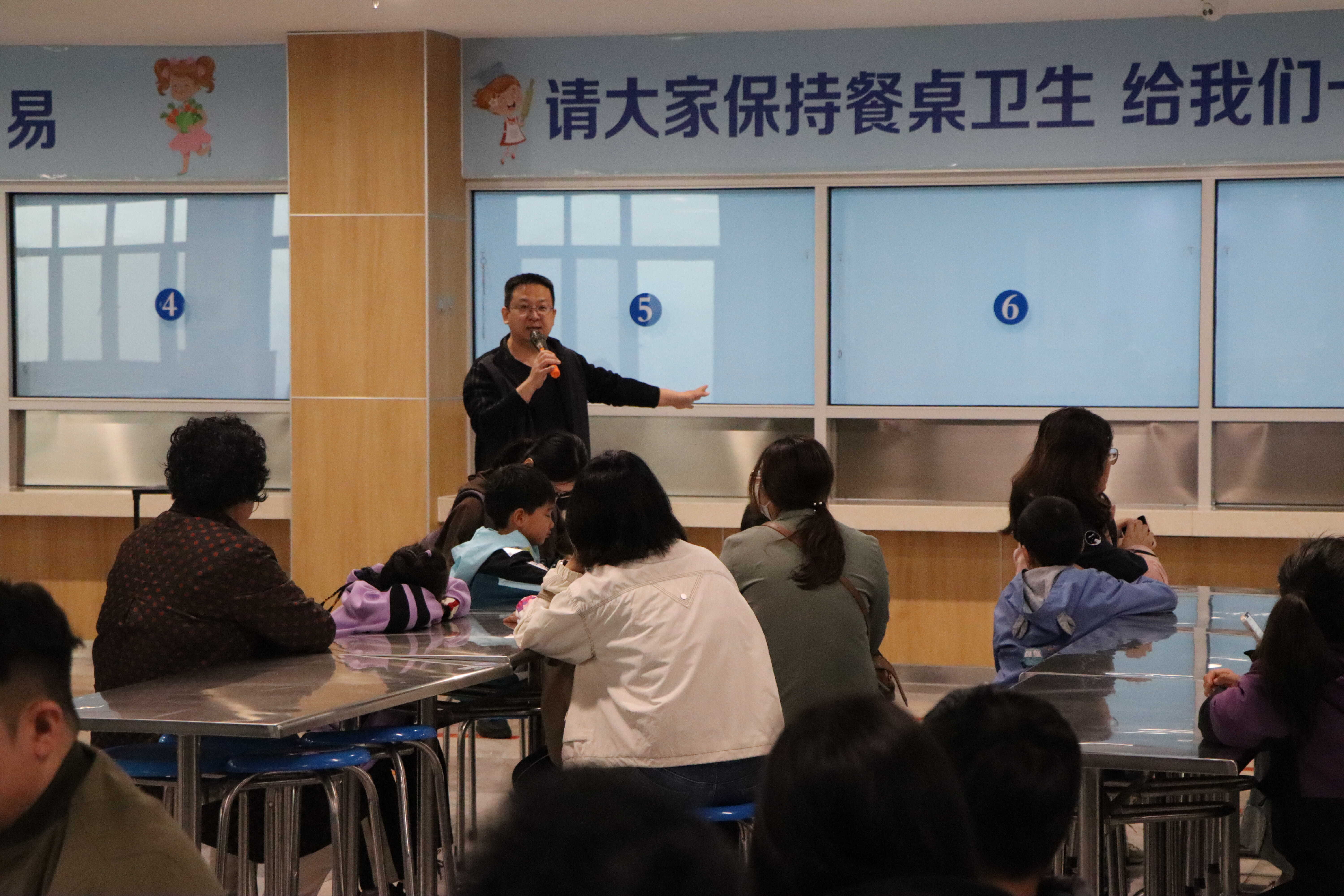 青島同安路小學(xué)開(kāi)放校園食堂,就家長(zhǎng)關(guān)系的問(wèn)題給予耐心的解答
