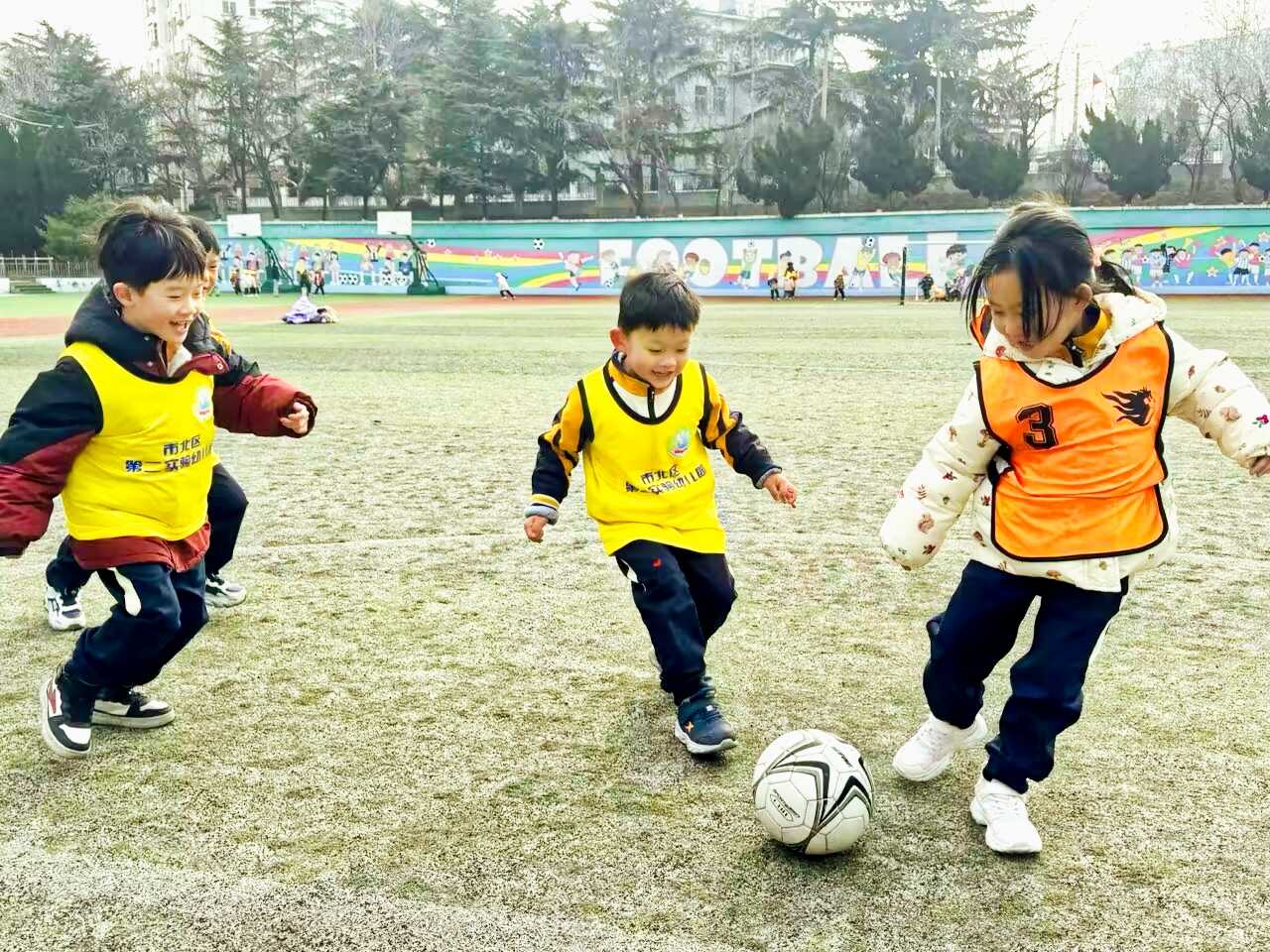 校園開(kāi)放期間,幼兒園小朋友來(lái)到青島宜陽(yáng)路小學(xué),孩子們操場(chǎng)上快樂(lè)玩耍