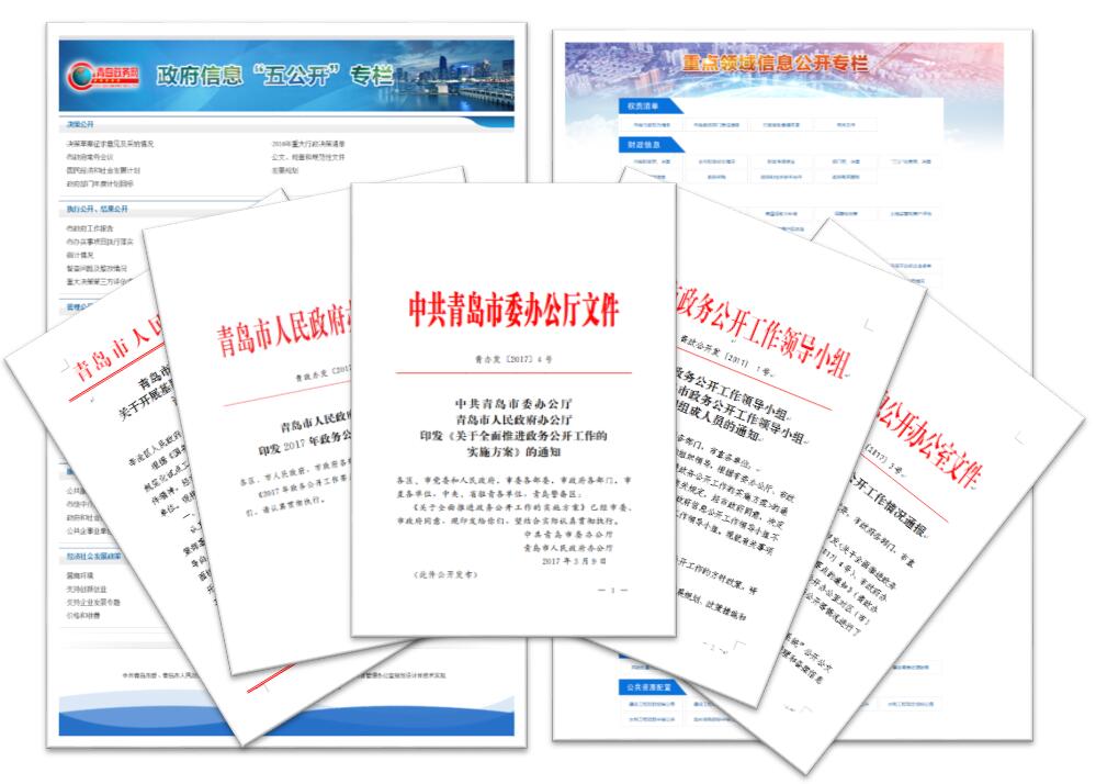 ?。ㄒ唬┘訌?qiáng)組織領(lǐng)導(dǎo),完善全市政務(wù)公開頂層設(shè)計(jì)。2017年3月,市委辦公廳、市政府辦公廳印發(fā)《全面推進(jìn)政務(wù)公開工作的實(shí)施方案》(青辦發(fā)〔2017〕4號),完善了決策、執(zhí)行、管理、服務(wù)和結(jié)果公開以及政策解讀、新聞發(fā)布、輿情回應(yīng)的具體內(nèi)容,明確到2020年我市政務(wù)公開總體目標(biāo)任務(wù)。8月,市政務(wù)公開工作領(lǐng)導(dǎo)小組印發(fā)《關(guān)于調(diào)整青島市政務(wù)公開工作領(lǐng)導(dǎo)小組職責(zé)和組成人員的通知》(青政公開發(fā)〔2017〕1號),完善了組織領(lǐng)導(dǎo)和推進(jìn)工作機(jī)制。10月,市政府召開全市政務(wù)公開工作會(huì)議,傳達(dá)學(xué)習(xí)國家和省關(guān)于政務(wù)公開的重要部署,進(jìn)一步明確各部門公開的責(zé)任義務(wù)。