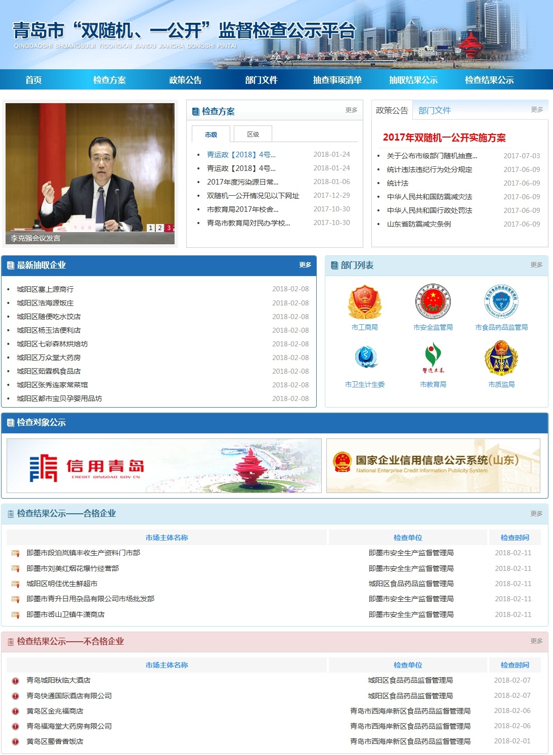 青島市“雙隨機(jī)、一公開”監(jiān)督檢查公示平臺