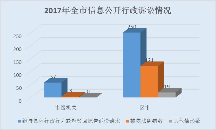 全市以信息公開為案由被提起行政訴訟案件450件。市級機(jī)關(guān)共60件,其中維持具體行政行為57件,糾錯(cuò)3件;區(qū)市共390件,其中維持具體行政行為250件,糾錯(cuò)121件,其他情形19件。