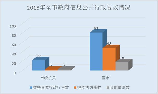 全市以信息公開為案由被提起行政復(fù)議案件173件。市級機(jī)關(guān)共26件,其中維持具體行政行為22件,糾錯(cuò)2件,其他情形2件;區(qū)(市)共147件,其中維持具體行政行為81件,糾錯(cuò)48件,其他情形18件。