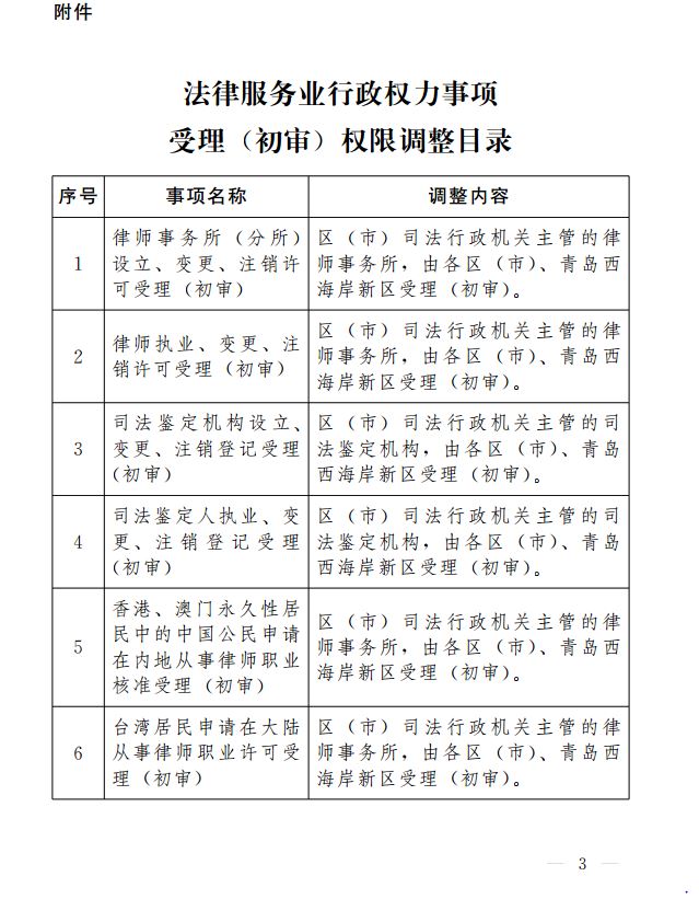附件:法律服務(wù)業(yè)行政權(quán)力事項(xiàng)受理(初審)權(quán)限調(diào)整目錄