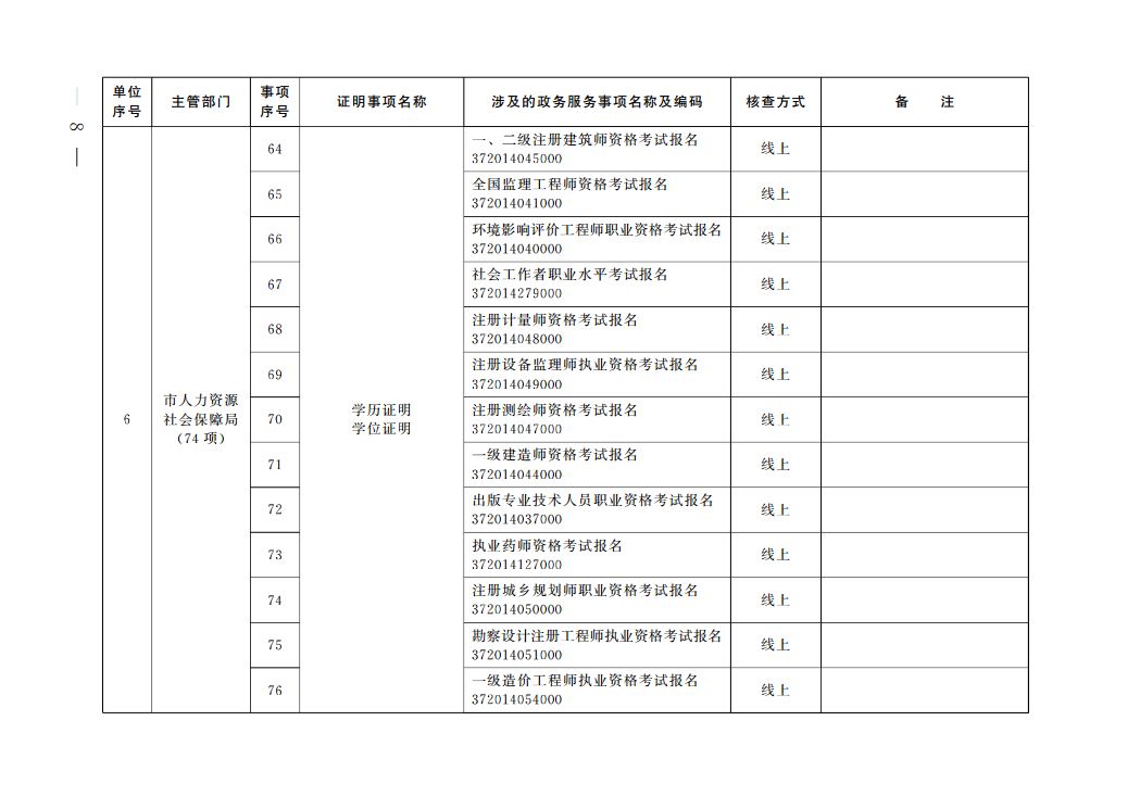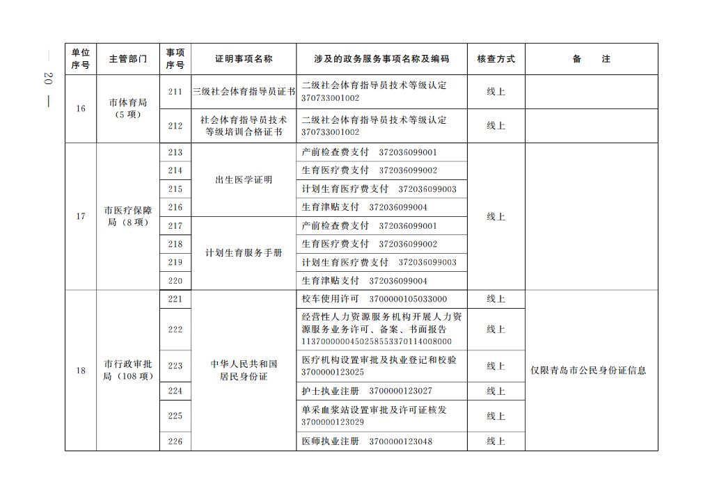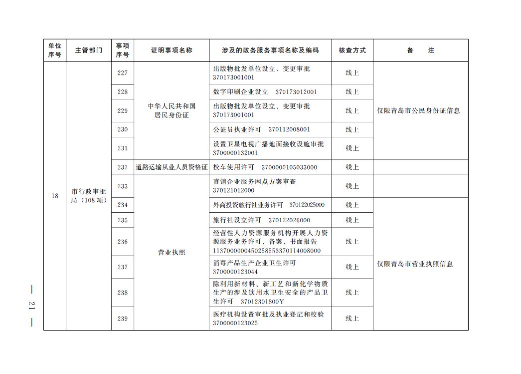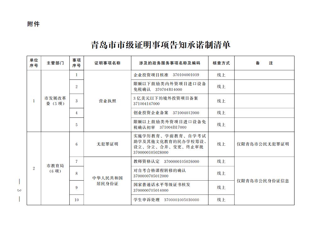 根據(jù)《國(guó)務(wù)院辦公廳關(guān)于全面推行證明事項(xiàng)和涉企經(jīng)營(yíng)許可事項(xiàng)告知承諾制的指導(dǎo)意見(jiàn)》(國(guó)辦發(fā)〔2020〕42號(hào))、《山東省人民政府辦公廳關(guān)于印發(fā)山東省全面推行證明事項(xiàng)告知承諾制實(shí)施方案的通知》(魯政辦發(fā)〔2020〕29號(hào))要求,我市全面推行證明事項(xiàng)告知承諾制。經(jīng)審核確認(rèn),現(xiàn)將《青島市市級(jí)證明事項(xiàng)告知承諾制清單》予以公布。清單將根據(jù)法律、法規(guī)、國(guó)務(wù)院決定及工作實(shí)際進(jìn)行動(dòng)態(tài)調(diào)整。