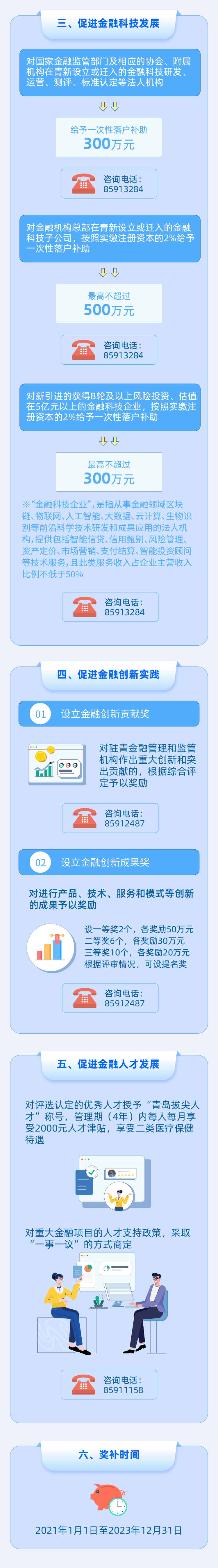 4.1政策標題:設立金融創(chuàng)新貢獻獎,對駐青金融管理和監(jiān)管機構根據(jù)綜合評定予以獎勵。
