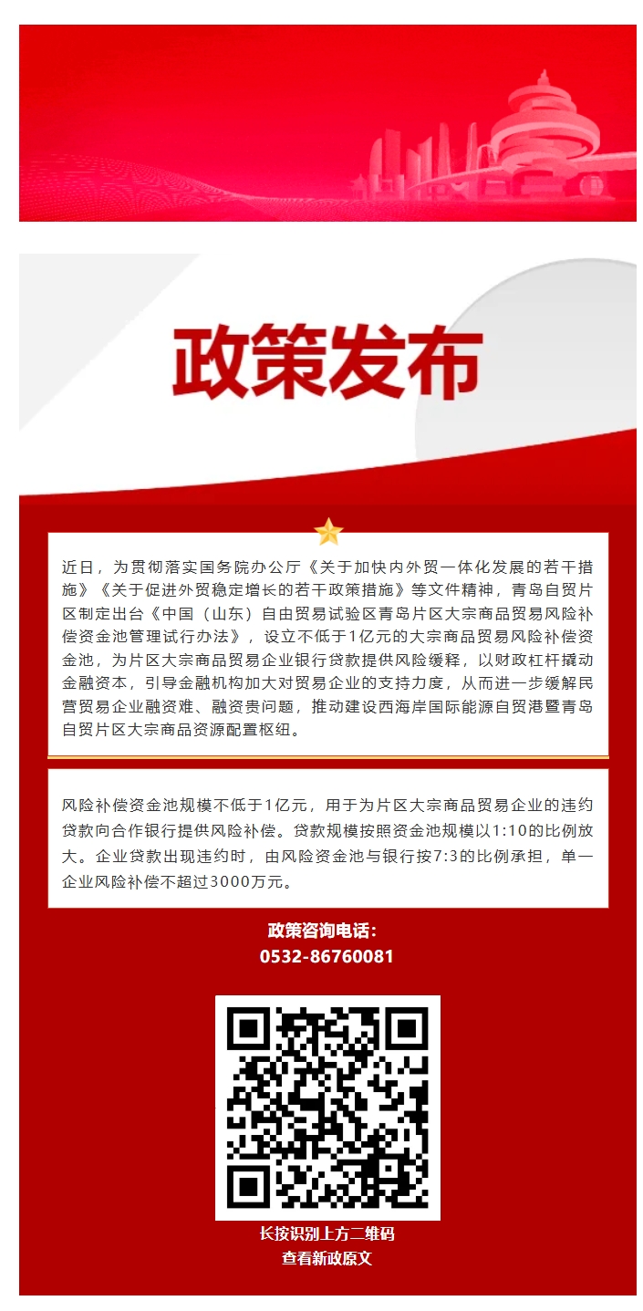 設(shè)立不低于1億元的資金池!青島自貿(mào)片區(qū)制定出臺大宗商品貿(mào)易風(fēng)險補償資金池管理試行辦法