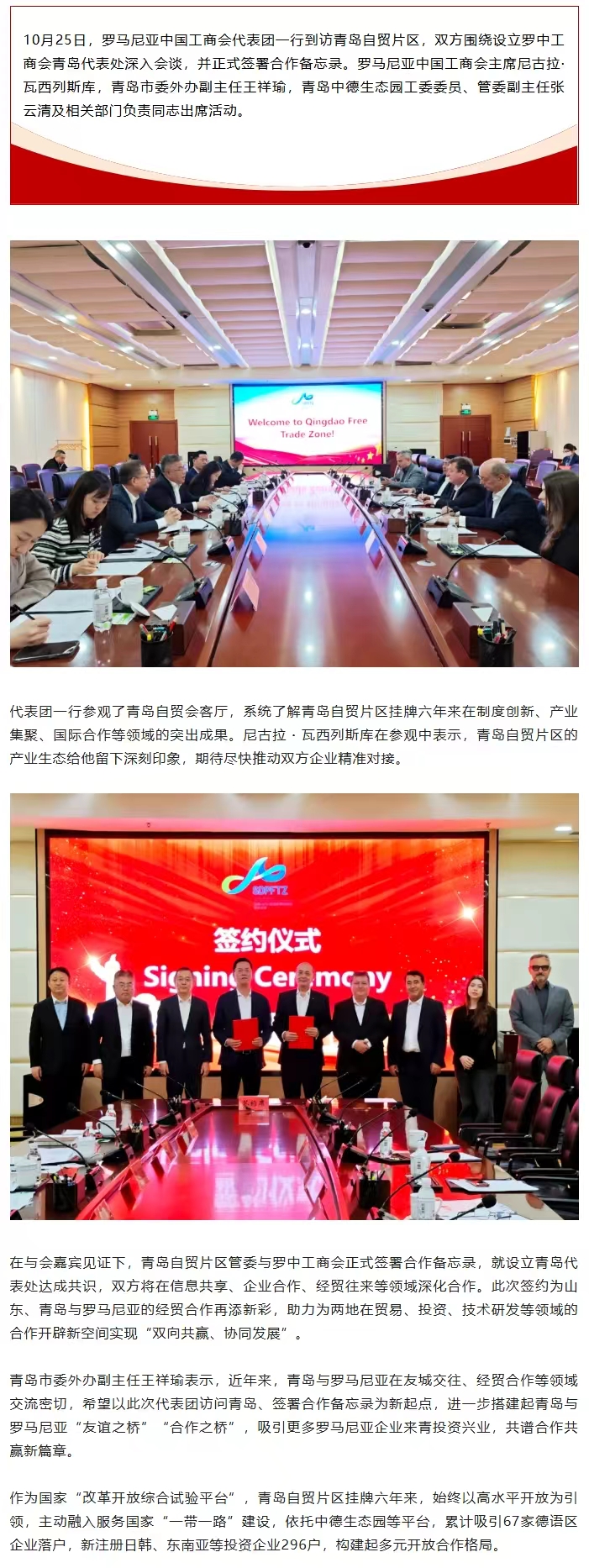 青島自貿(mào)片區(qū)與羅馬尼亞中國(guó)工商會(huì)簽署備忘錄,共啟經(jīng)貿(mào)合作新篇章