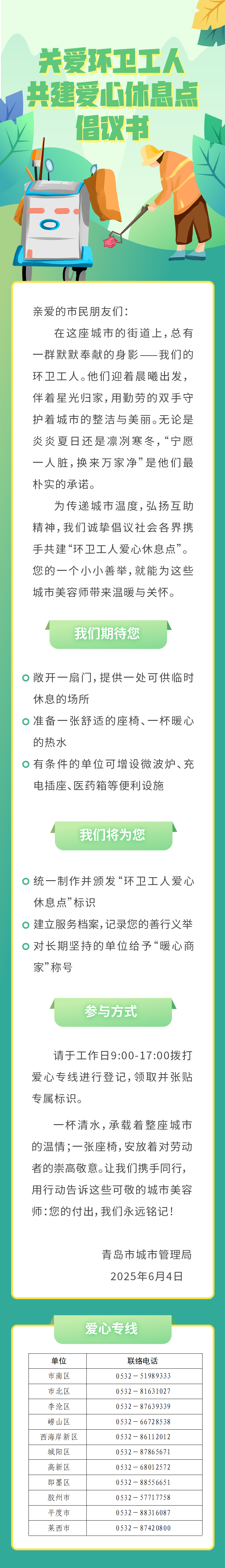 “關(guān)愛(ài)環(huán)衛(wèi)工人 共建愛(ài)心休息點(diǎn)”倡議書(shū)