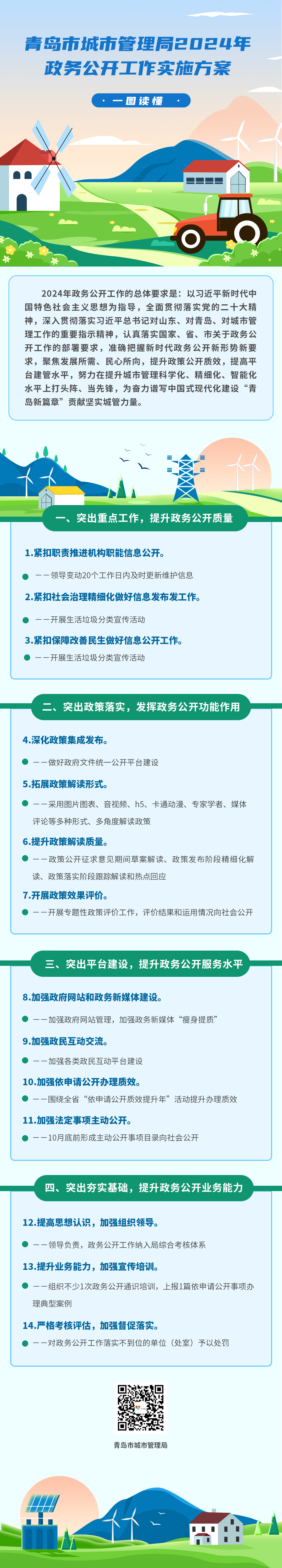 為深化全局2024年政務(wù)公開工作,明確分工,壓實(shí)責(zé)任,結(jié)合局屬各單位各處室工作職責(zé),研究制定《青島市城市管理局2024年政務(wù)公開工作實(shí)施方案》,以下簡(jiǎn)稱《方案》。