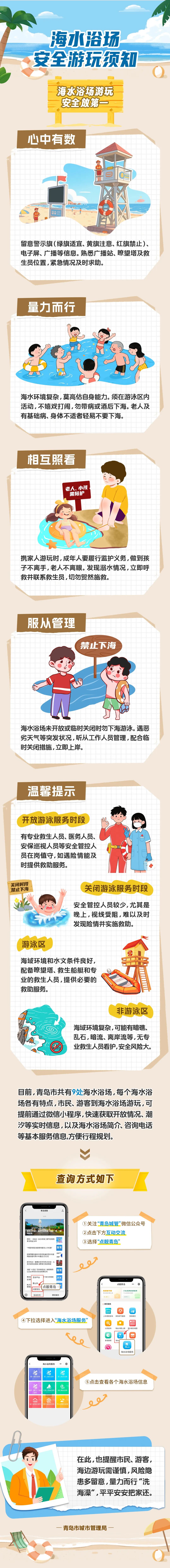 炎炎夏日、碧海藍(lán)天,漫步海灣、洗洗海澡,青島9處海水浴場(chǎng)已成為市民、游客避暑納涼、休閑游玩的最佳選擇之一。在海水浴場(chǎng)游玩切勿粗心大意,要把安全放在第一位。市民、游客可以提前查詢(xún)海水浴場(chǎng)信息,規(guī)劃好行程。