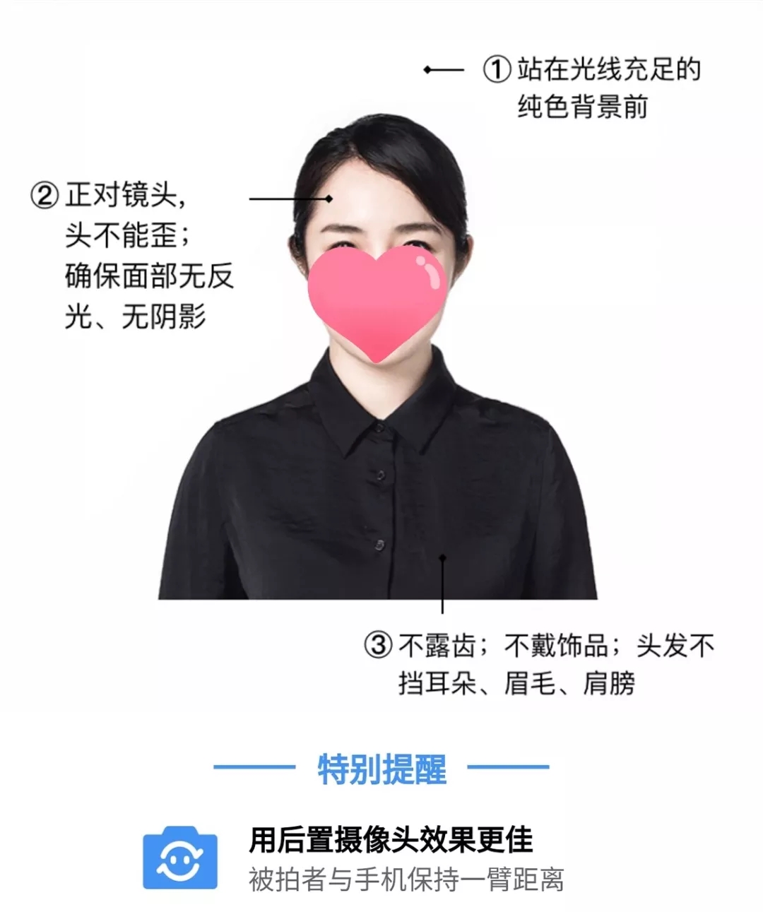 辦理期滿換證業(yè)務的用戶,可以根據(jù)下圖提示提前在家自助完成駕駛證照片拍攝存手機內(nèi),或帶上白底一寸電子照至網(wǎng)點辦理,避免在網(wǎng)點脫口罩拍照增加被感染的風險。