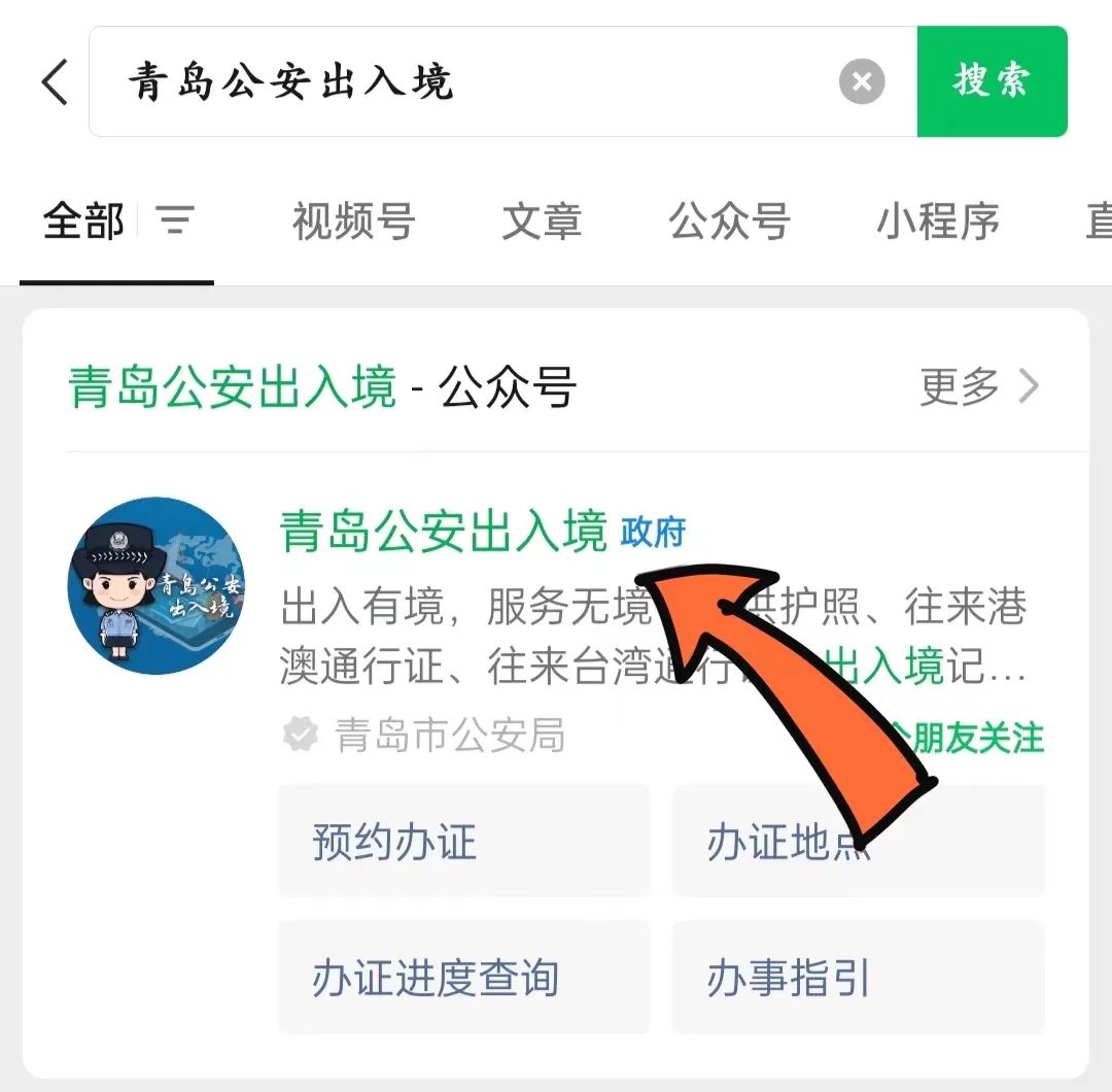 第一步:關(guān)注“青島公安出入境”微信公眾號(hào)