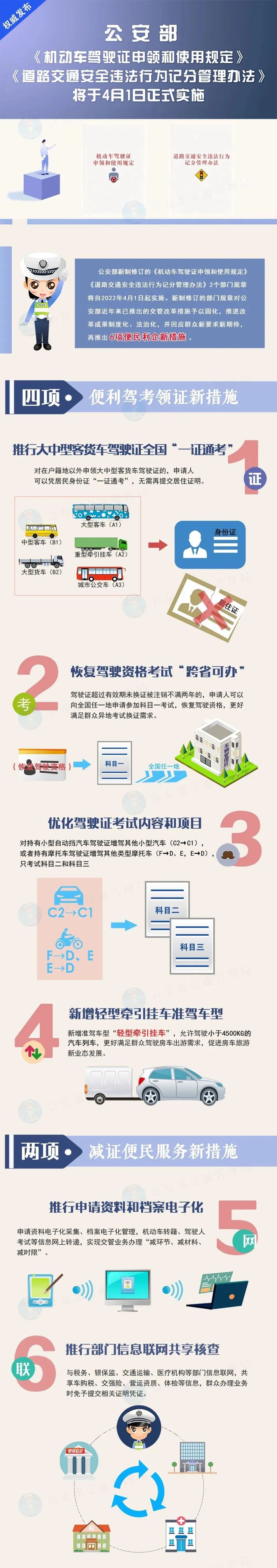 公安部新制修訂的《機(jī)動(dòng)車駕駛證申領(lǐng)和使用規(guī)定》《道路交通安全違法行為記分管理辦法》2個(gè)部門規(guī)章將自2022年4月1日起實(shí)施。