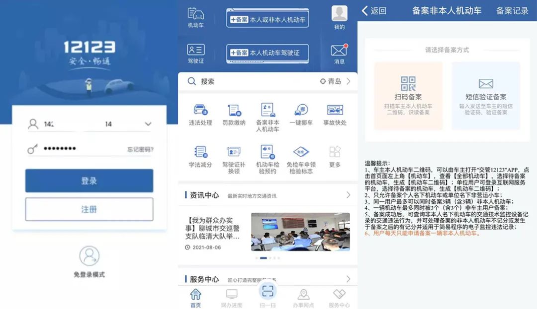 登錄“交管12123”APP后,進(jìn)入備案非本人機(jī)動車業(yè)務(wù)流程,用戶可以選擇“掃碼備案”或“短信驗證備案”兩種方式備案非本人機(jī)動車。