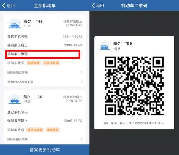 【車主用戶生成機(jī)動車二維碼】