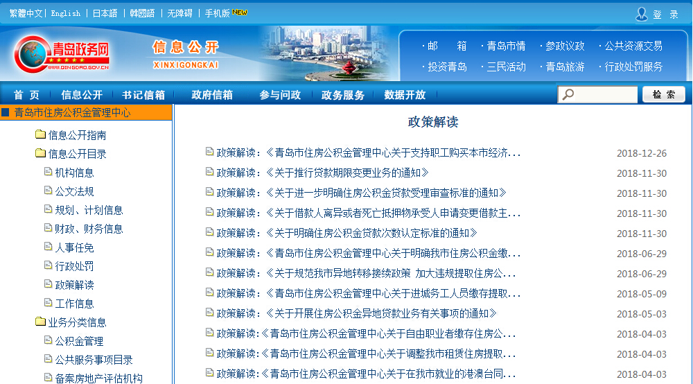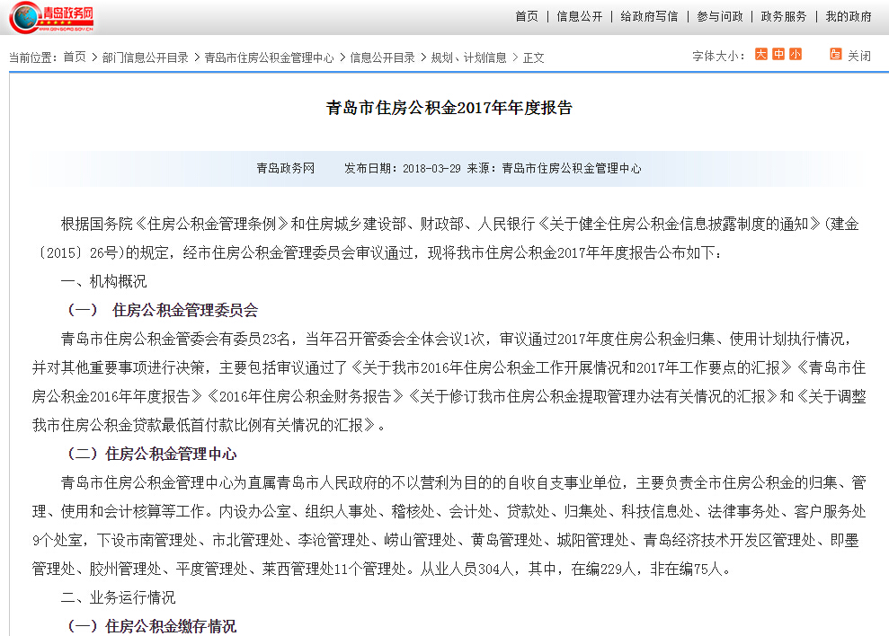 按照上級(jí)有關(guān)文件要求,及時(shí)編制完成《青島市住房公積金2017年年度報(bào)告》及相關(guān)解讀文件,并在青島市政務(wù)網(wǎng)、青島市住房公積金官方網(wǎng)站和“青島公積金”微信公眾號(hào)進(jìn)行發(fā)布。明確住房公積金管理運(yùn)行信息發(fā)布要求,于每季度初通過(guò)青島政務(wù)網(wǎng)、青島市住房公積金官方網(wǎng)站發(fā)布上一季度全市住房公積金繳存、提取、貸款、財(cái)務(wù)以及風(fēng)險(xiǎn)狀況等公積金管理運(yùn)行信息。