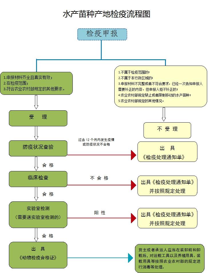 按照“屬地管理”原則,生產(chǎn)的水產(chǎn)苗種在離場之前,企業(yè)向所在區(qū)、市設(shè)立的水產(chǎn)苗種產(chǎn)地檢疫申報點進(jìn)行申報,并提交申報單等相關(guān)材料。申報檢疫時,應(yīng)當(dāng)提交檢疫申報單、《水域灘涂養(yǎng)殖證》、《水產(chǎn)養(yǎng)殖生產(chǎn)記錄》等資料。對于從事水產(chǎn)苗種生產(chǎn)的,還應(yīng)當(dāng)提交《水產(chǎn)苗種生產(chǎn)許可證》。有引種的,還應(yīng)提交過去12個月內(nèi)引種來源地的《動物檢疫合格證明》。納入省級以上水生動物疫病監(jiān)測計劃的,還應(yīng)提交近2年監(jiān)測結(jié)果證明。
