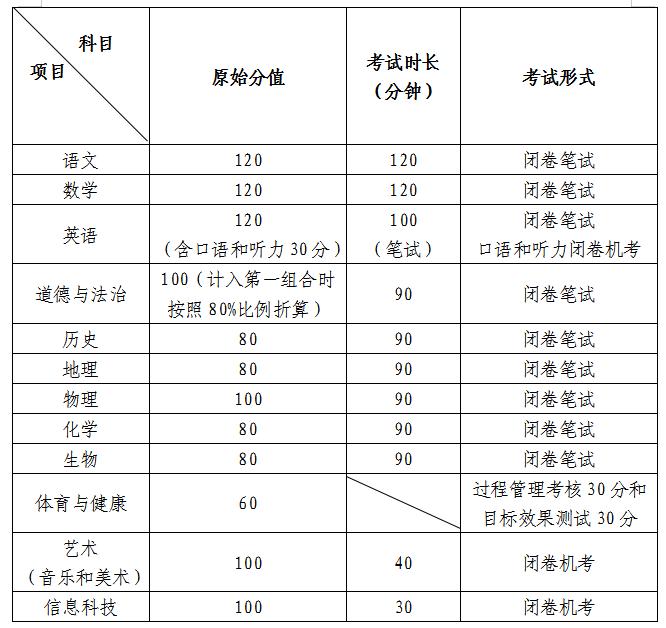 語文、數(shù)學(xué)、英語(含口語和聽力)、道德與法治、歷史、地理、物理、化學(xué)、生物,由市教育局統(tǒng)一組織考試。