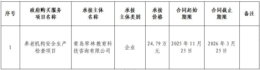青島市民政局2025年度政府購買服務(wù)項目承接主體(養(yǎng)老機構(gòu)安全生產(chǎn)檢查項目)